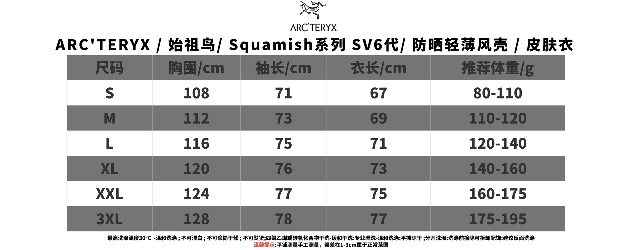 原单,𝗔𝗥𝗖'𝗧𝗘𝗥𝗬* 始祖N|𝗦𝗾𝘂𝗮𝗺𝗶𝘀𝗵系列 𝗦𝗩6代 防晒轻薄风壳皮肤衣