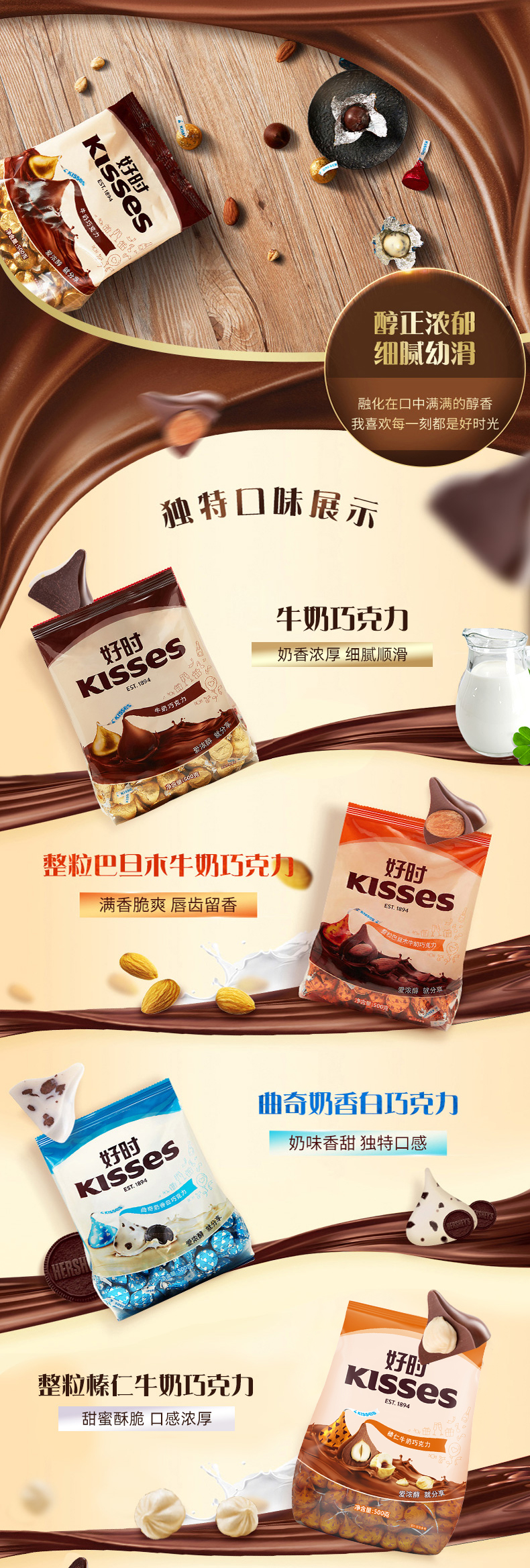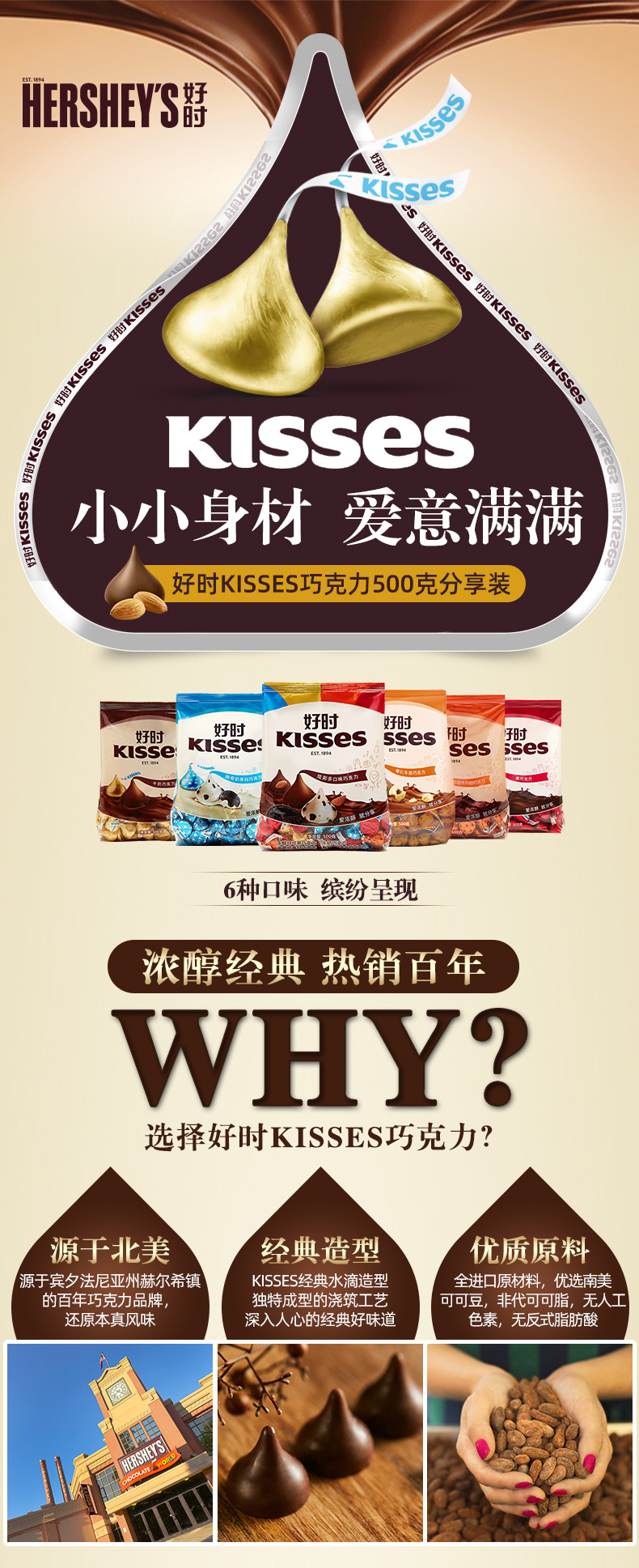 HERSHEY’S/好时KISSES 曲奇奶香白巧克力 500g 新老包装随机 香醇浓郁 好时相伴 包邮