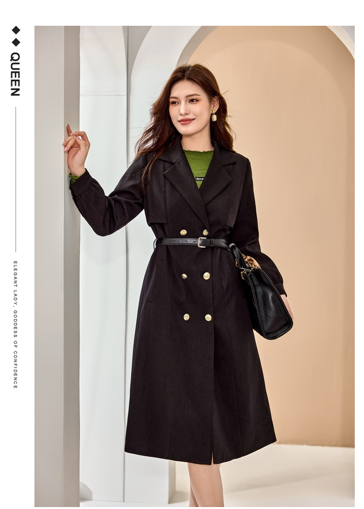 8/3奢姿2024年秋季新款大码女装气质翻驳领风衣胖妹妹系带中长款外套9943353607