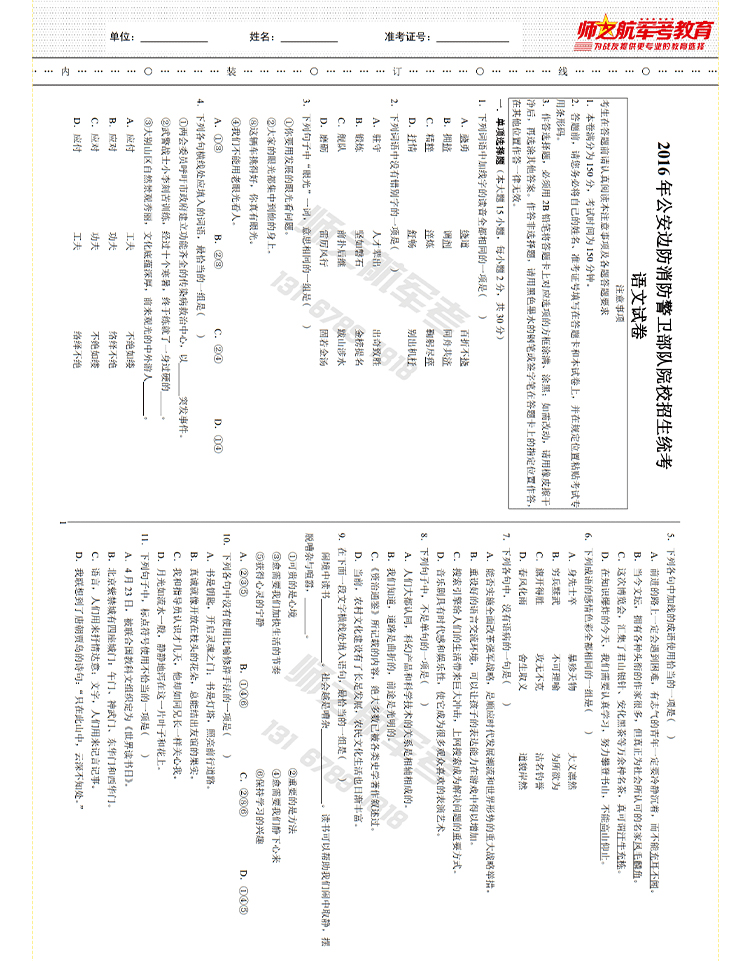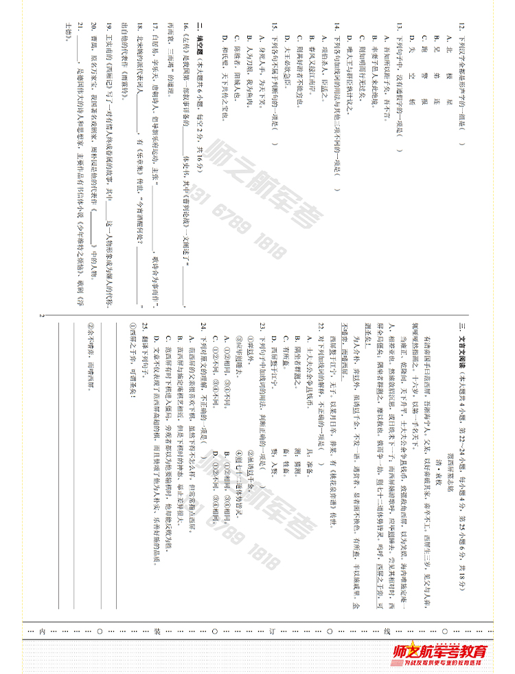 2026年师之航军考仿真试卷摸底卷
