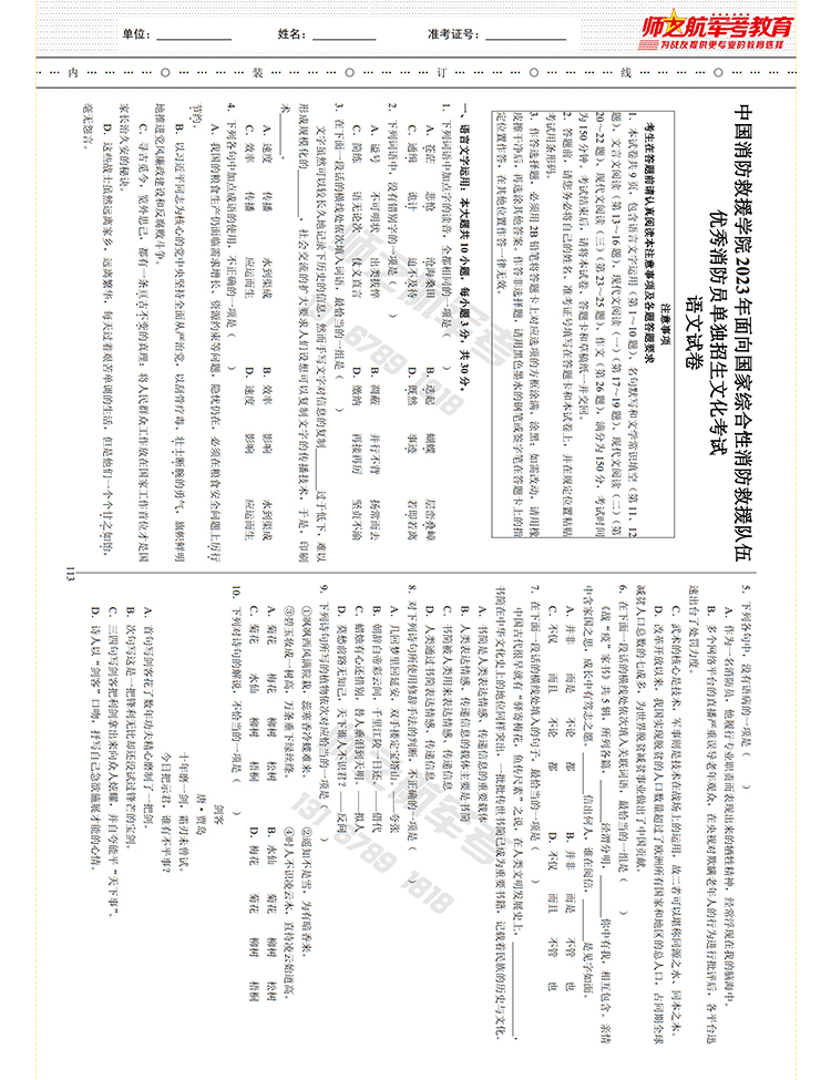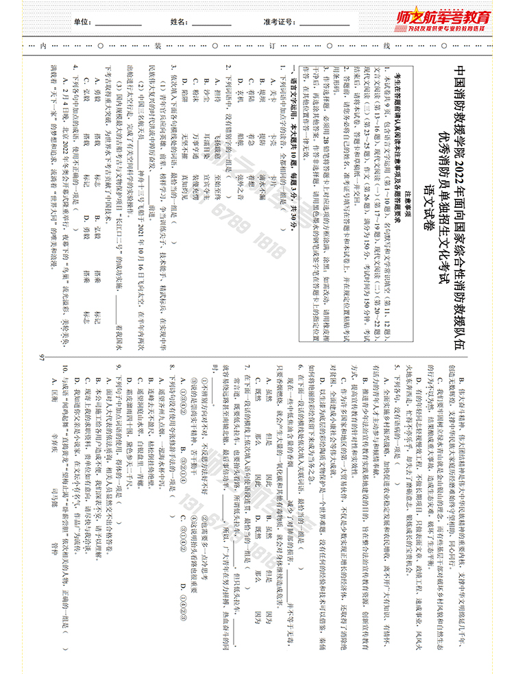 新版2016-2024年考消防学院消防员考学历年真题试卷资料