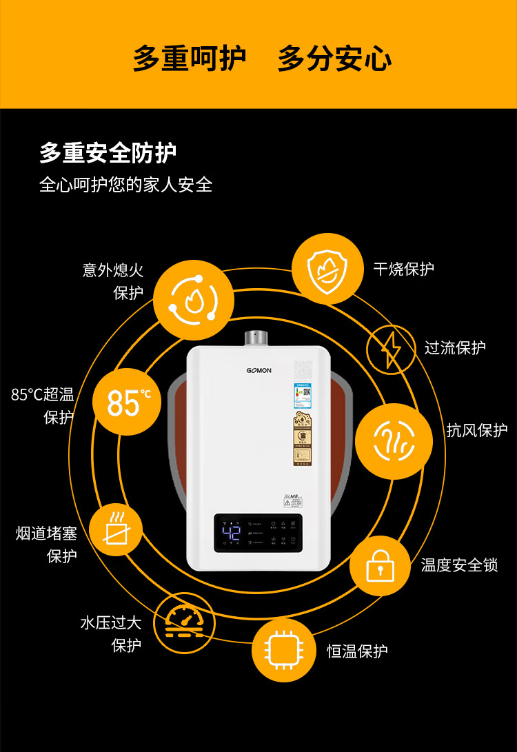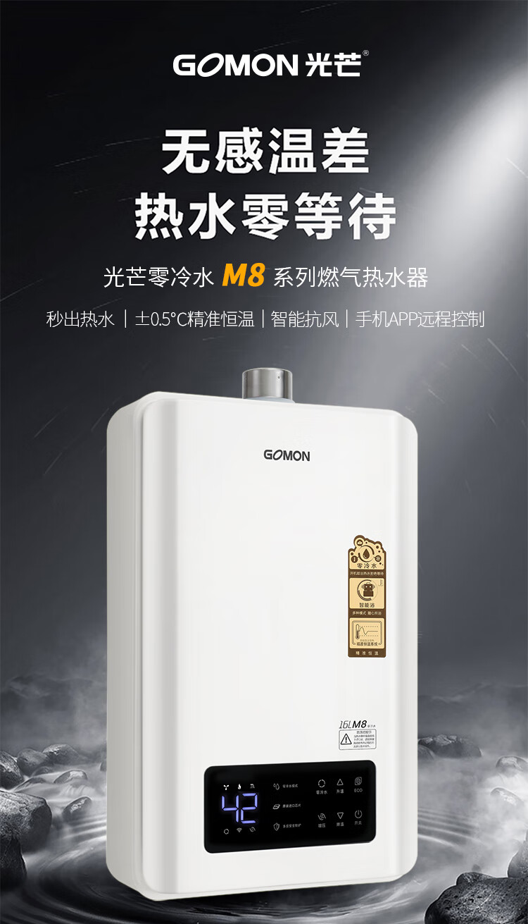 光芒(GOMON)M8零冷水燃气热水器 APP远程预约 智能语音互联 静音抗强风 全屋热水 ZMD 16升 M8零冷水系列