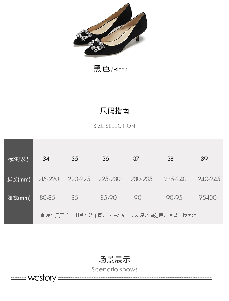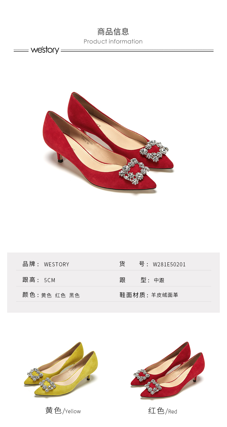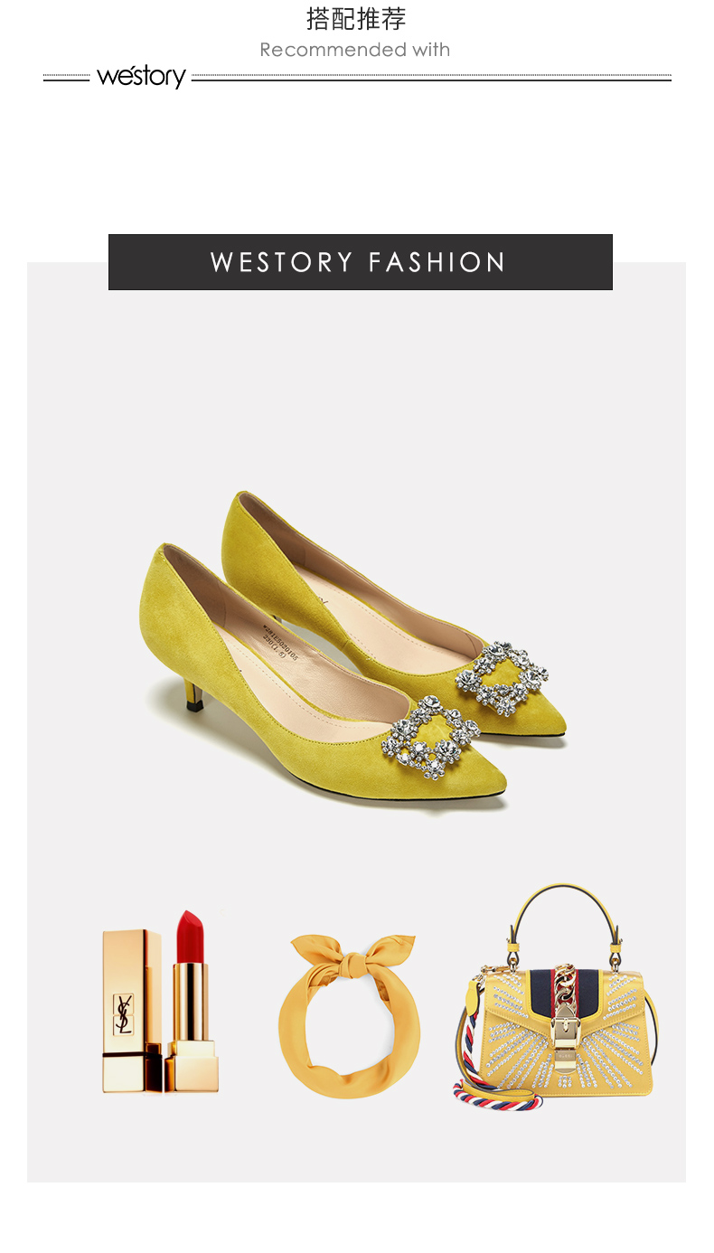 westory春夏新款高跟鞋水钻方扣单鞋细跟尖头女鞋W281E50201