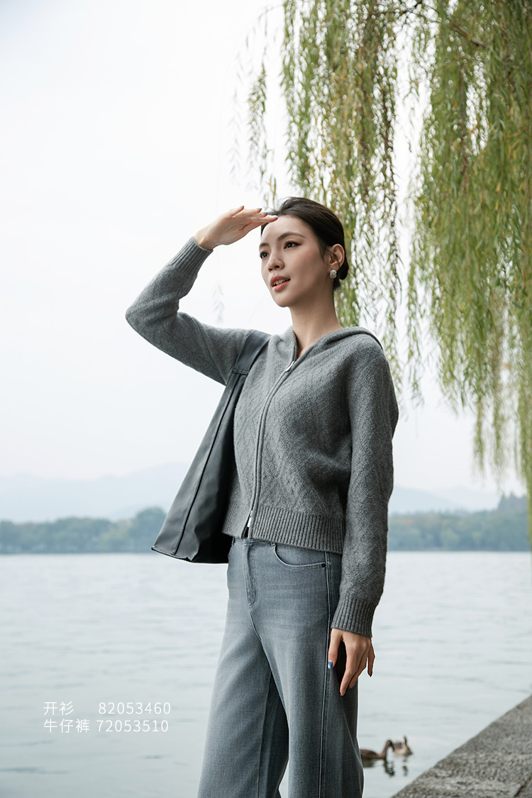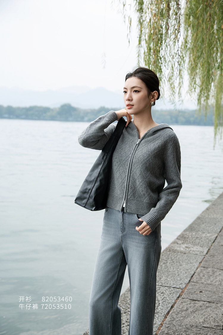 【山羊绒开衫外套】羊绒世家秋冬新品女士100%山羊绒连帽针织外套