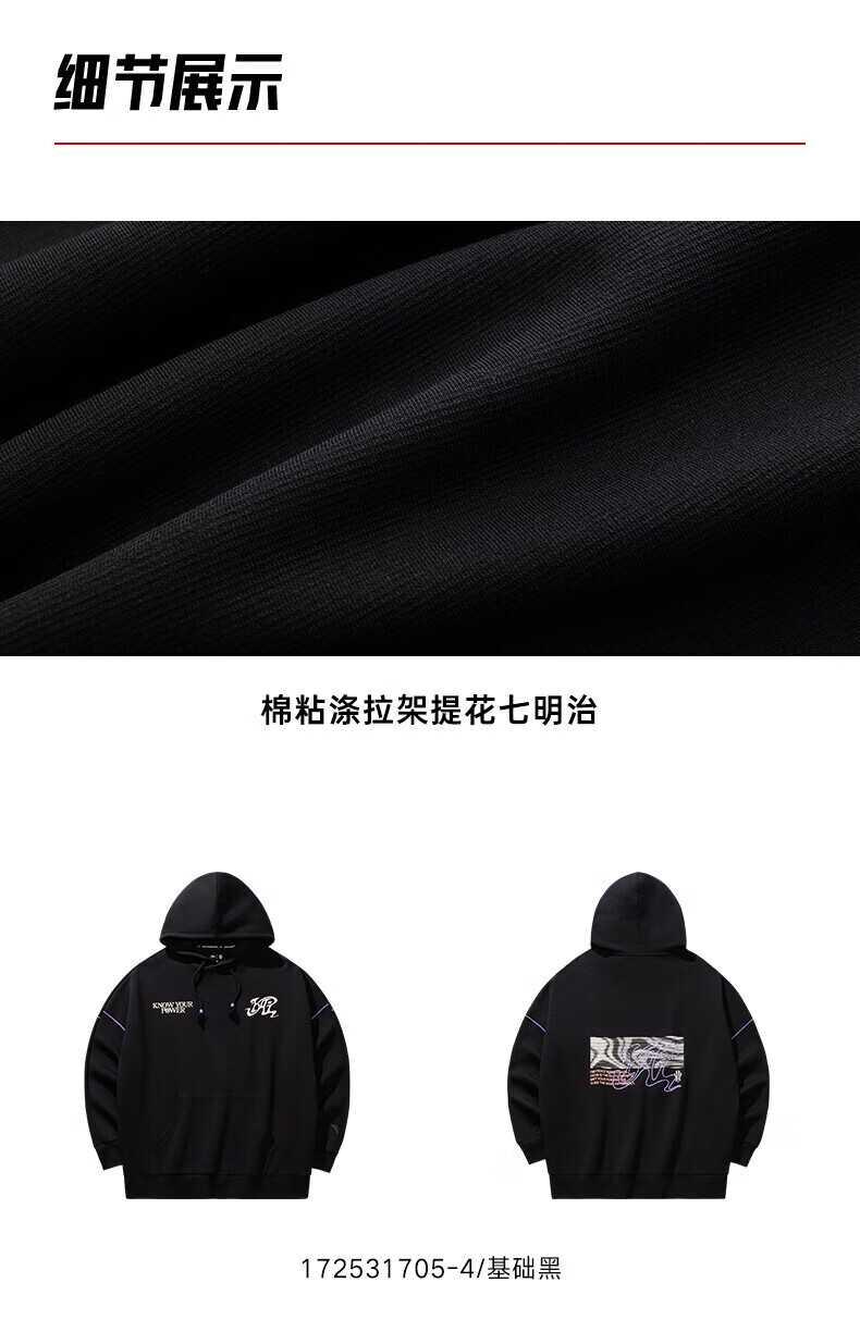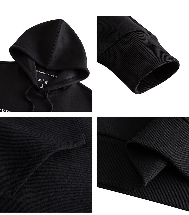 安踏(ANTA)欧文系列篮球弹力动型科技男女同款连帽卫衣套头衫172531705 基础黑-4