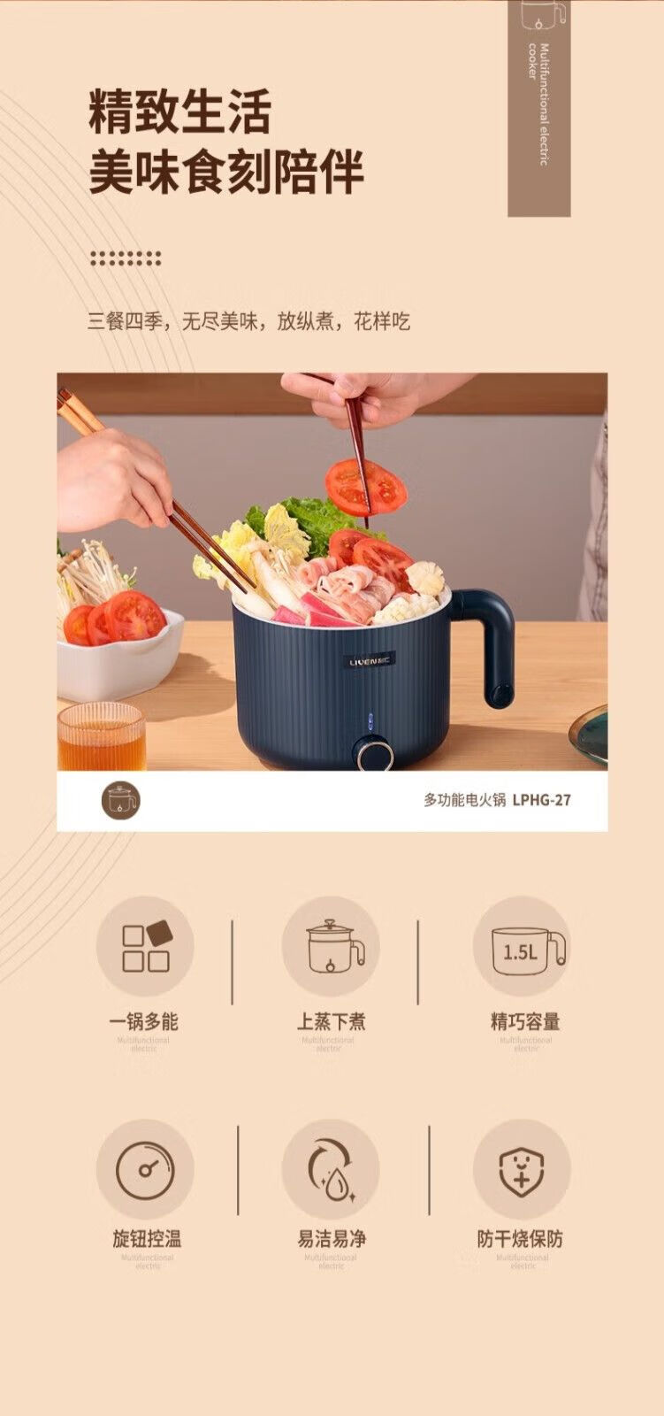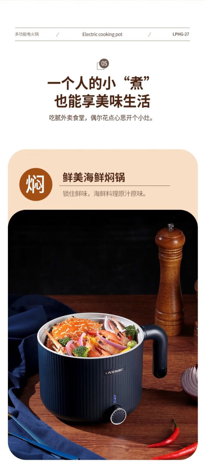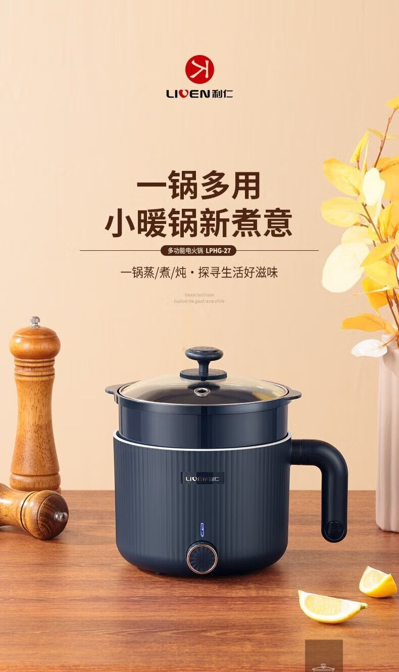 利仁多用途不锈钢小型电火锅多功能一体学生宿舍泡面锅家用LPHG-27