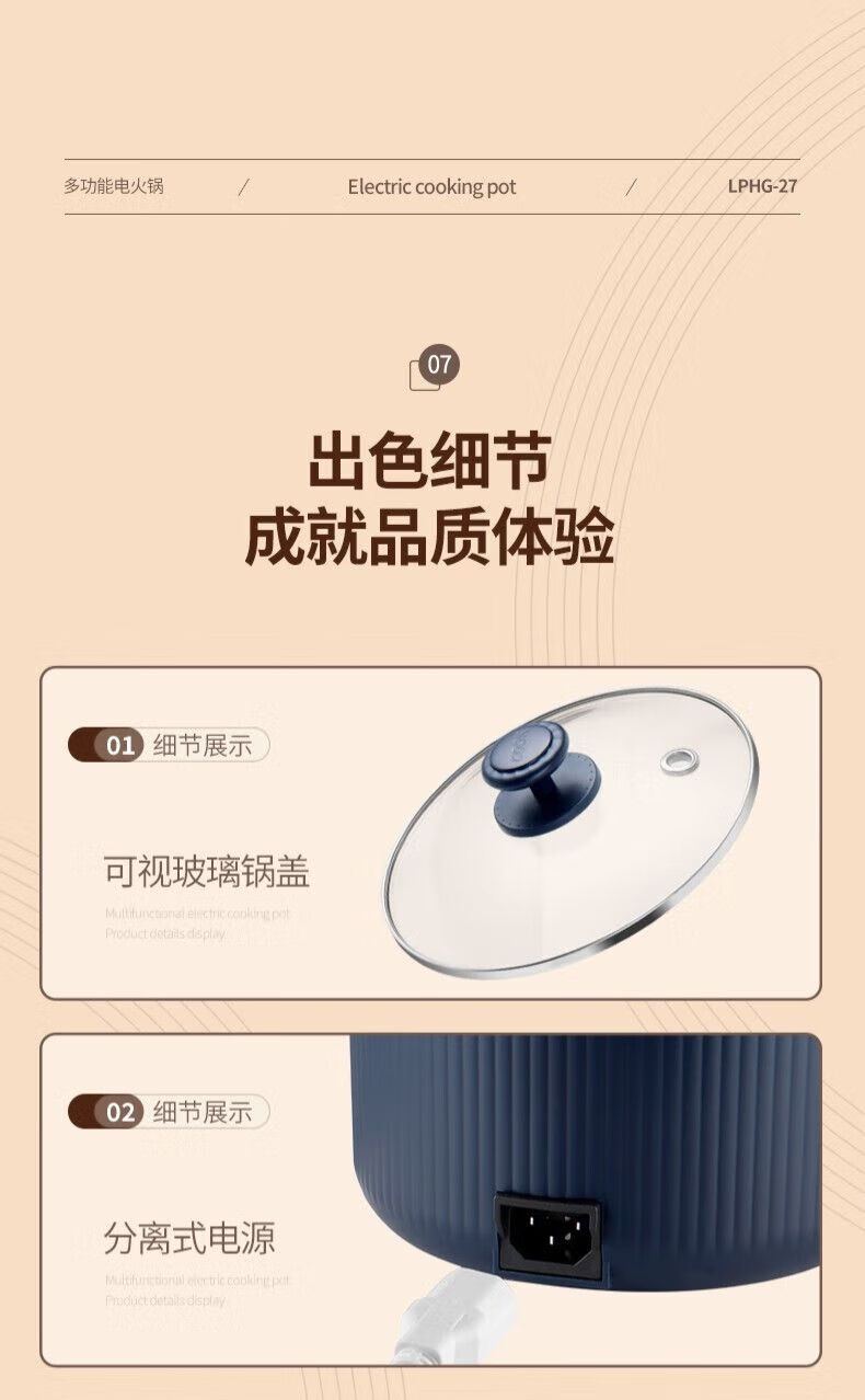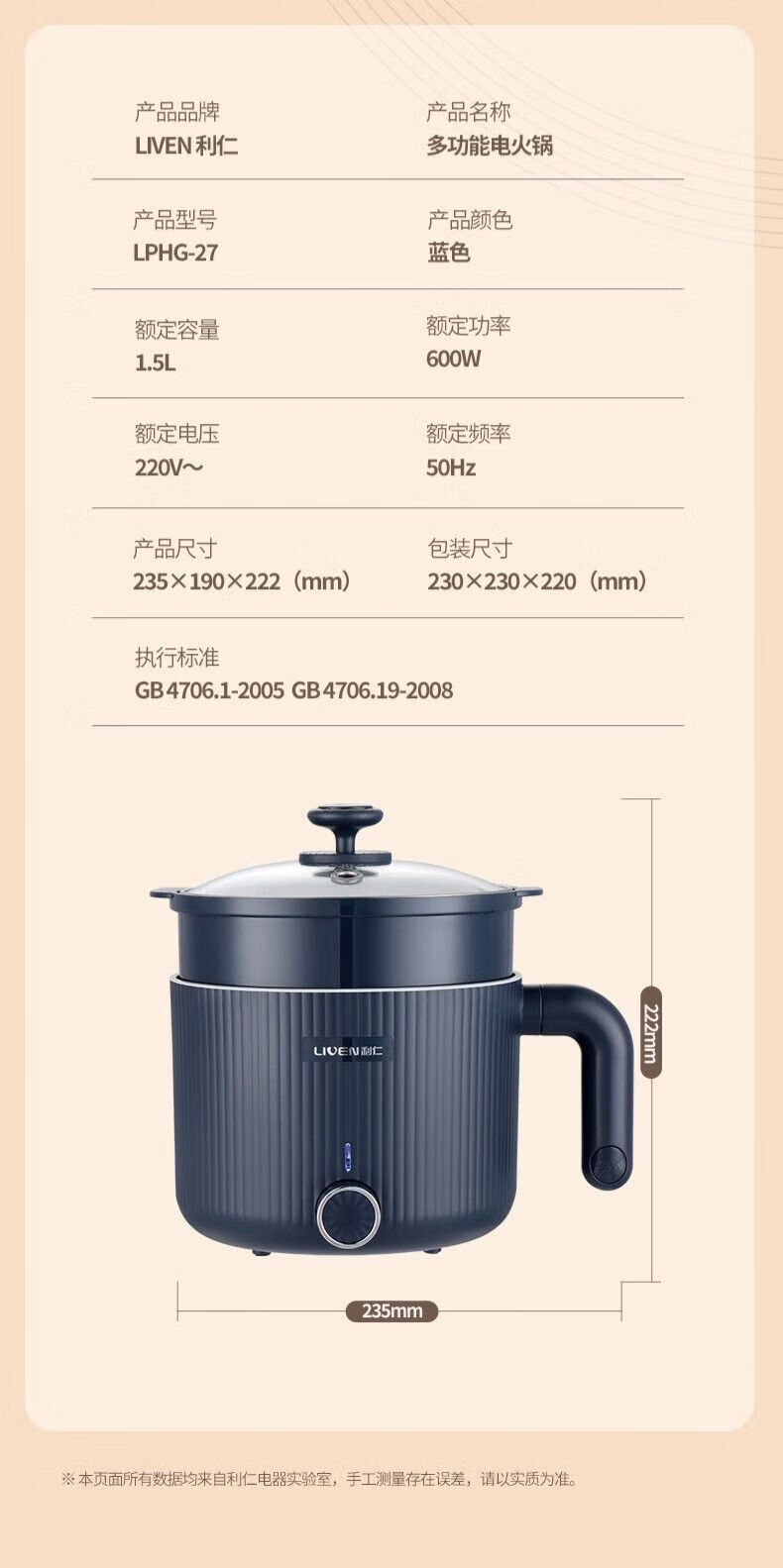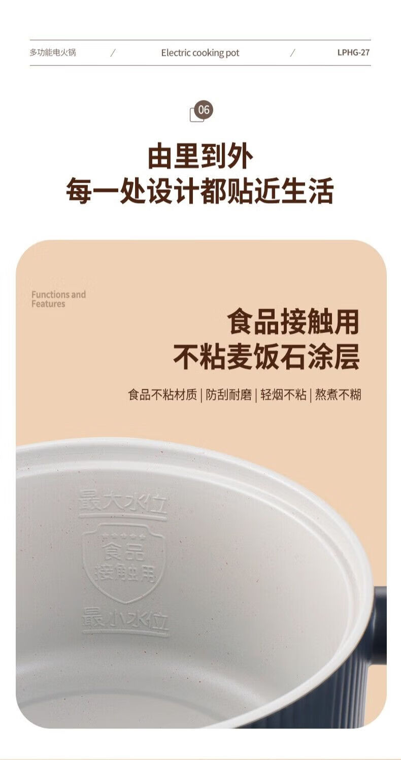 利仁多用途不锈钢小型电火锅多功能一体学生宿舍泡面锅家用LPHG-27