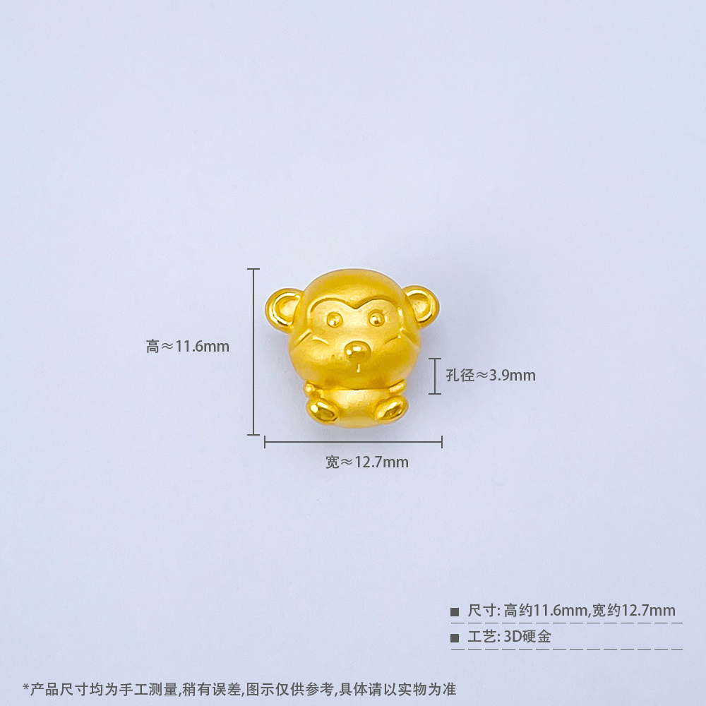 【限时7.5折】【定价黄金】足金 3D硬金猴年生肖猴手串(V3DSC00285)预售产品下单后不退款不退货不换货不补差价
