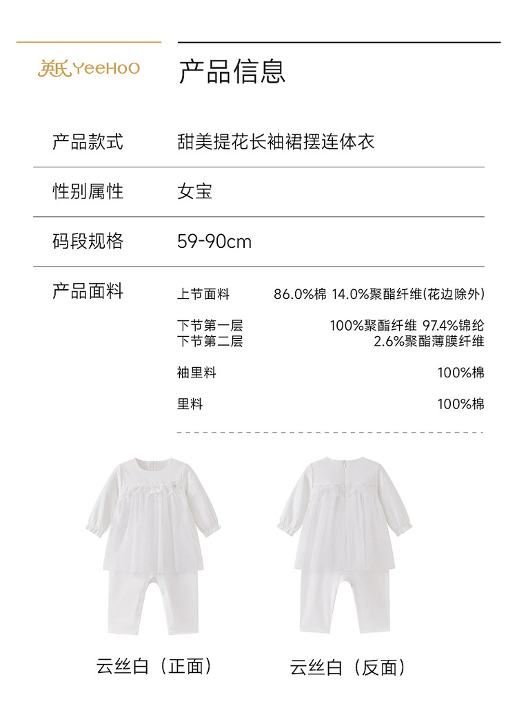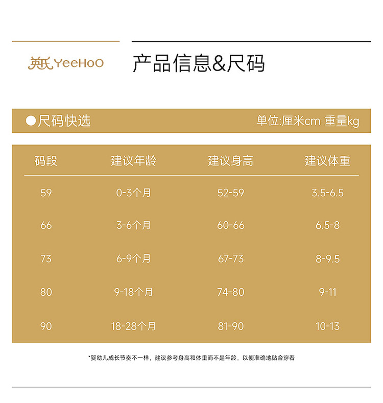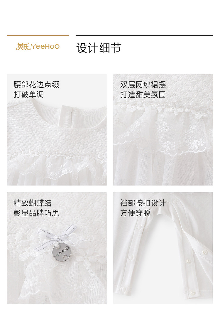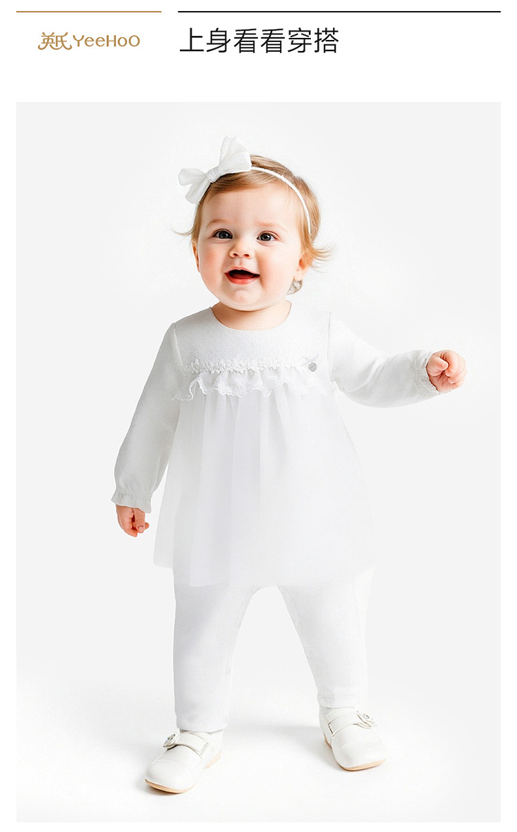 英氏婴儿连体衣新生儿衣服长袖女宝宝纯色外出服哈衣YRHAJ1S008A