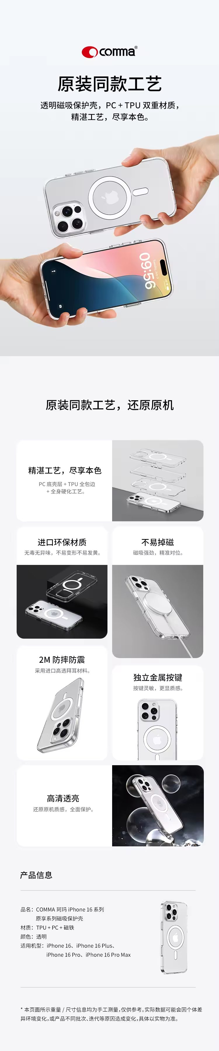 COMMA珂玛 iPhone 16 系列 原享系列磁吸保护壳
