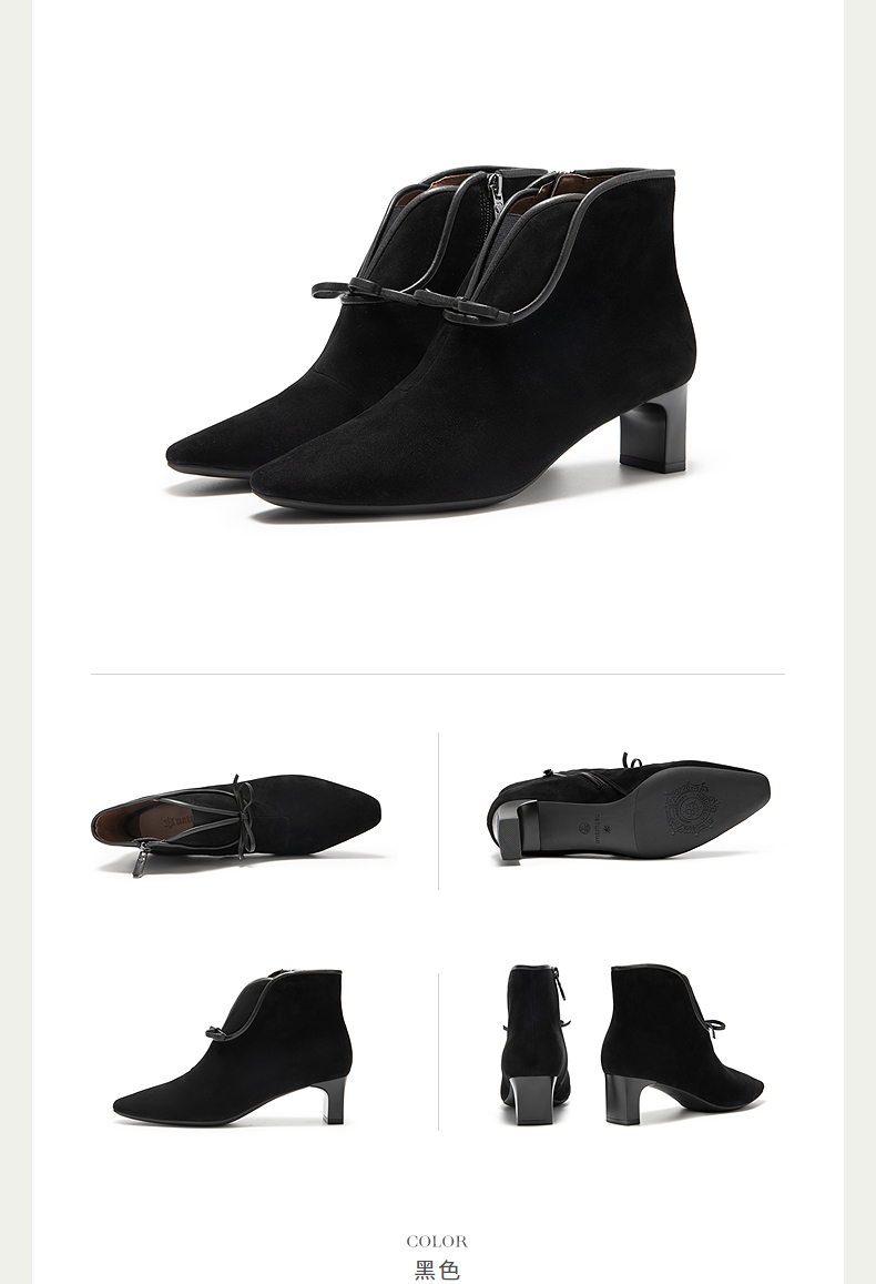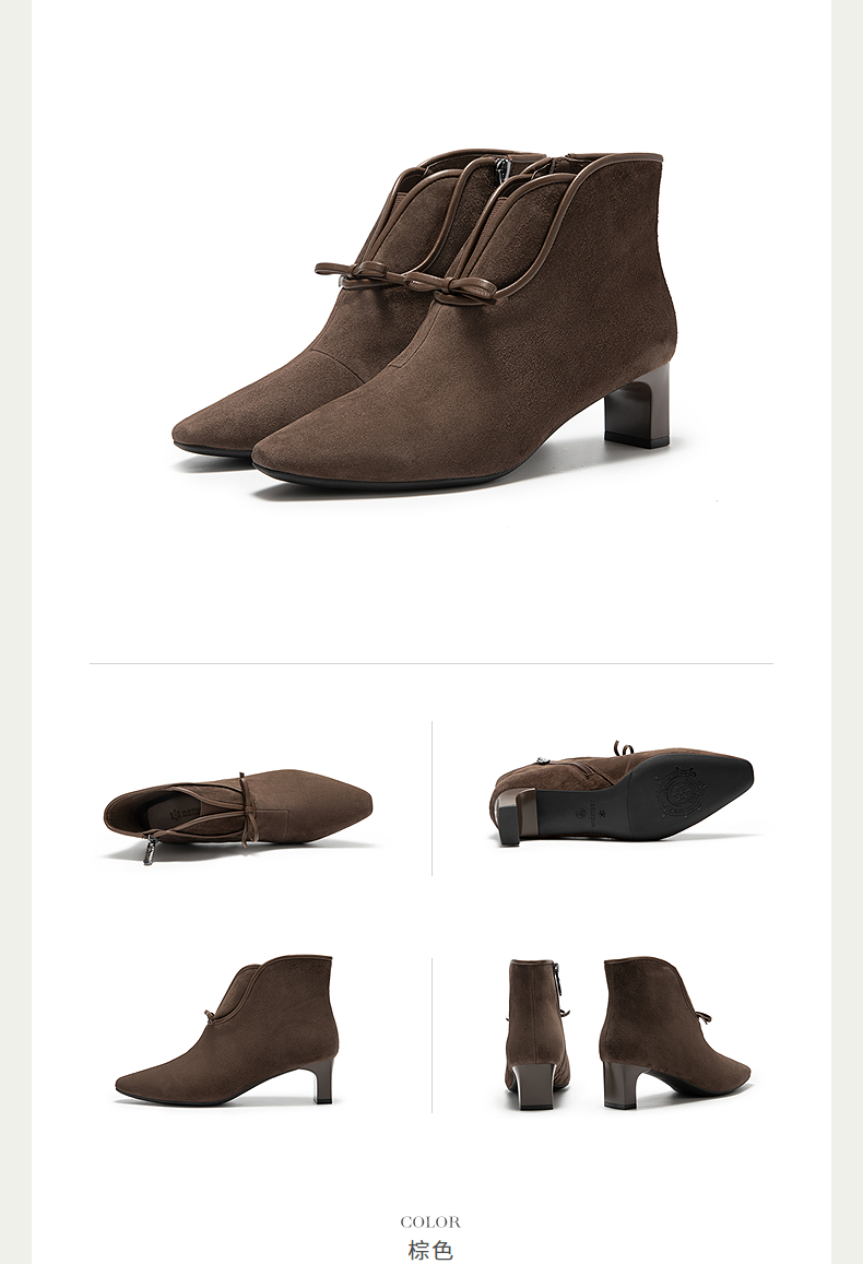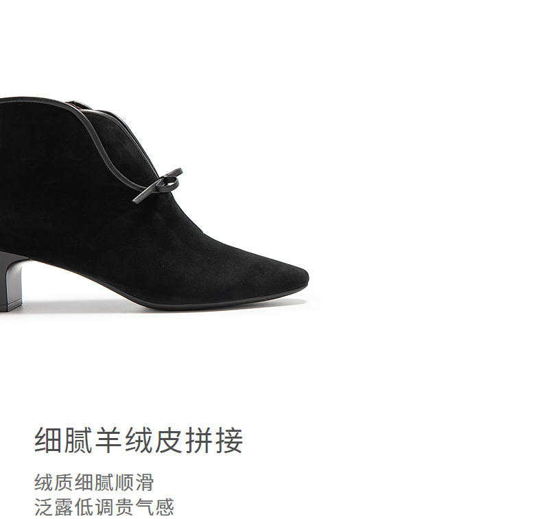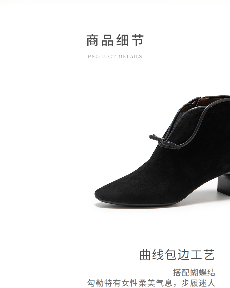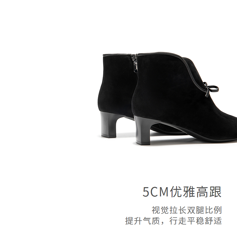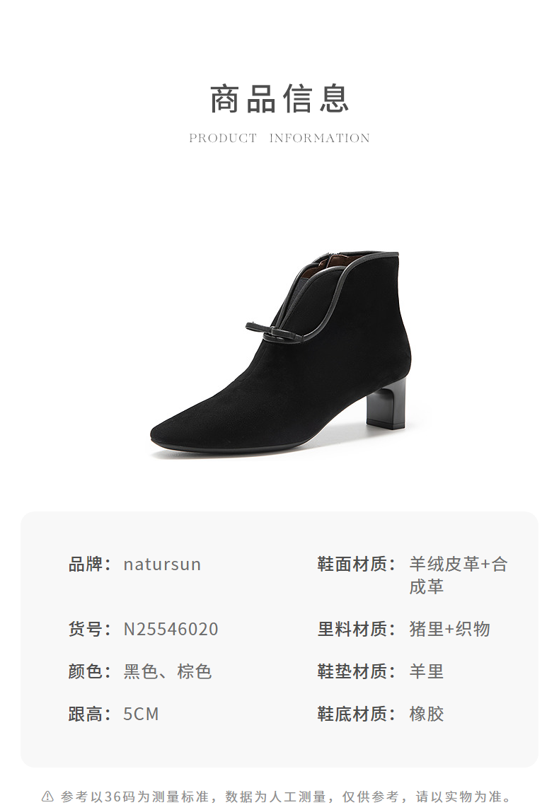 natursun法式时装靴瘦瘦靴通勤女士气质粗跟绒面短靴N25546020