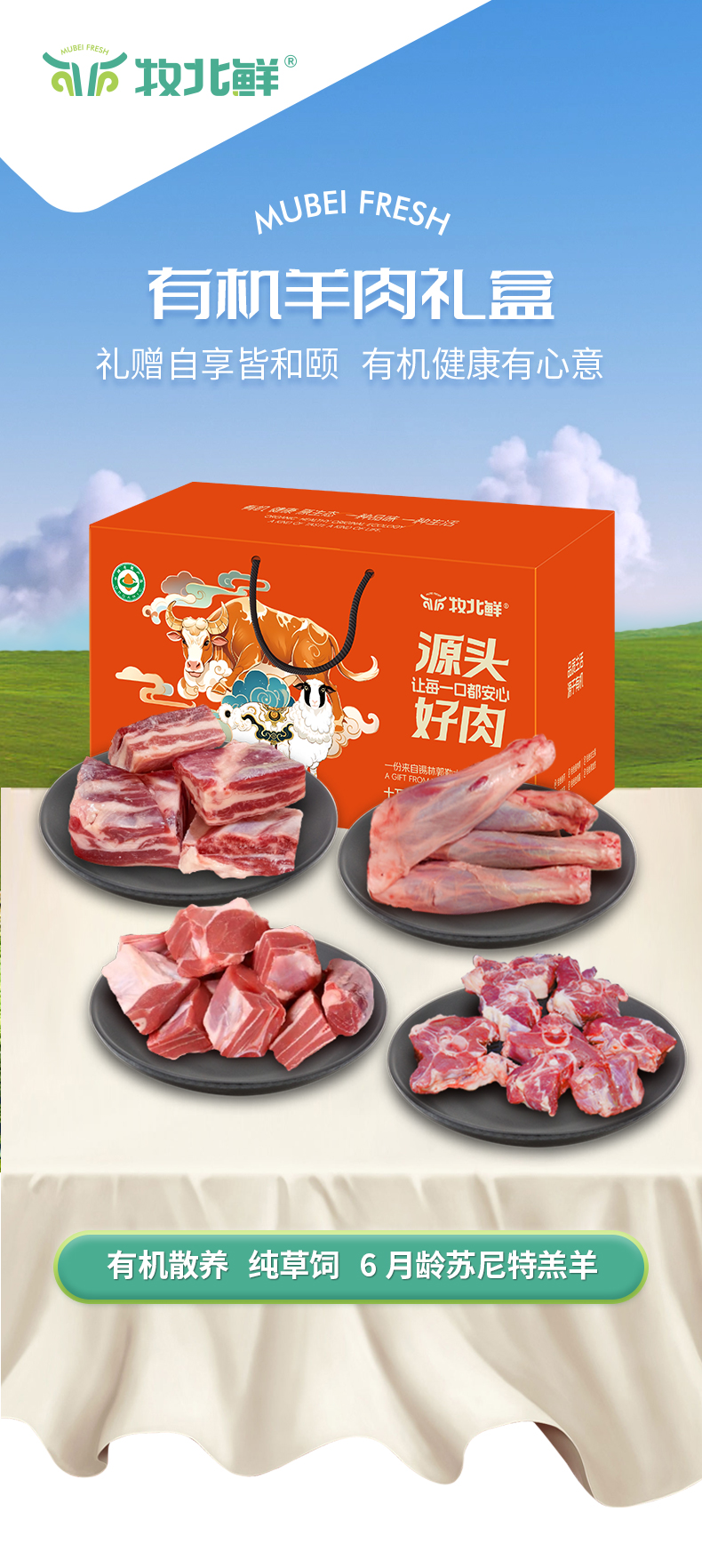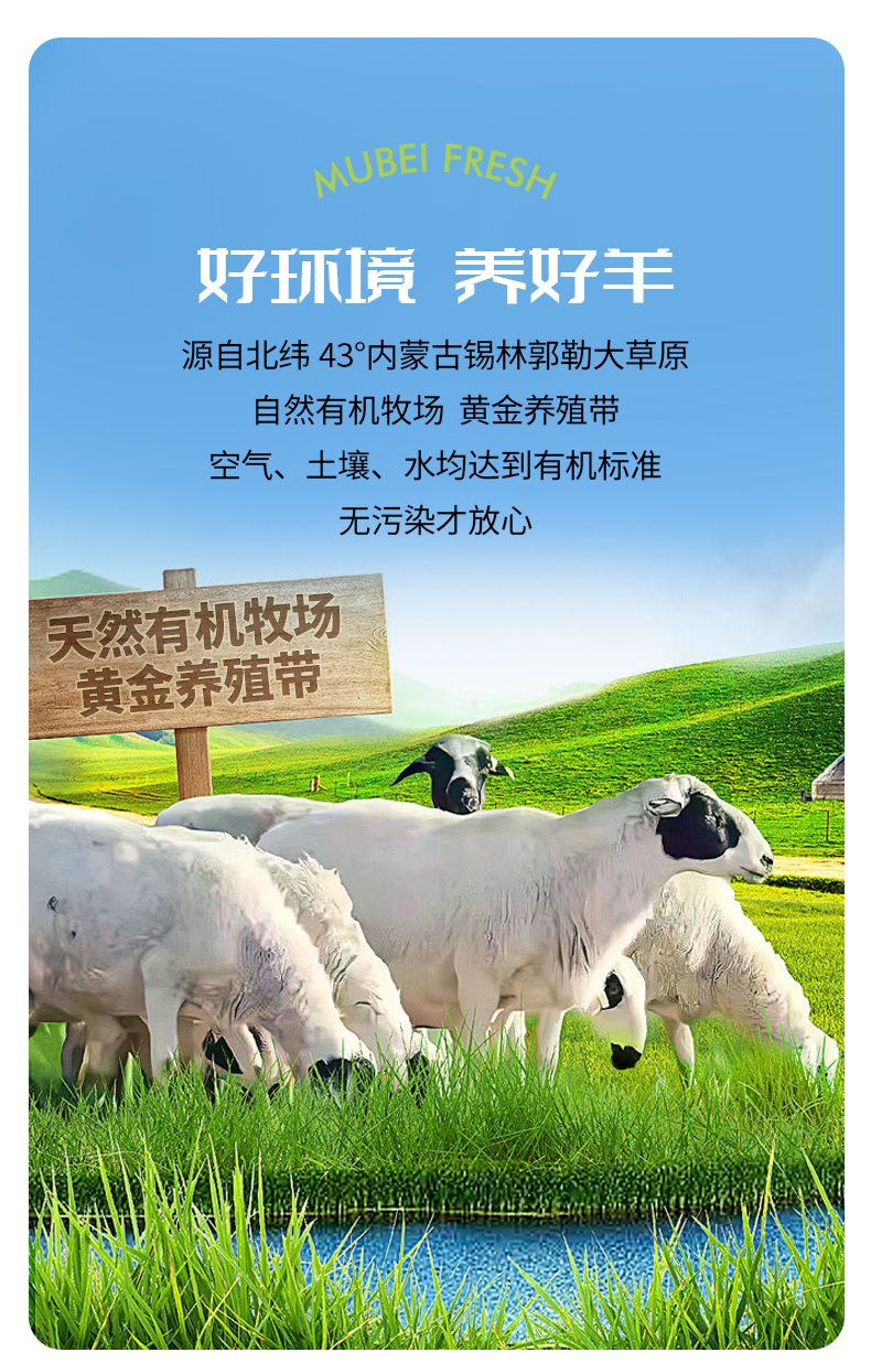 - “牧北鲜”是蒙味牧场公司旗下专注于有机牧场养殖,有机农产品种植、有机牛羊肉深加工的品牌。公司秉承“尊重自然,倡导有机生活”的经营理念, 从源头严控有机牛羊肉品质,推动绿色消费升级,让品质生活触手可及
