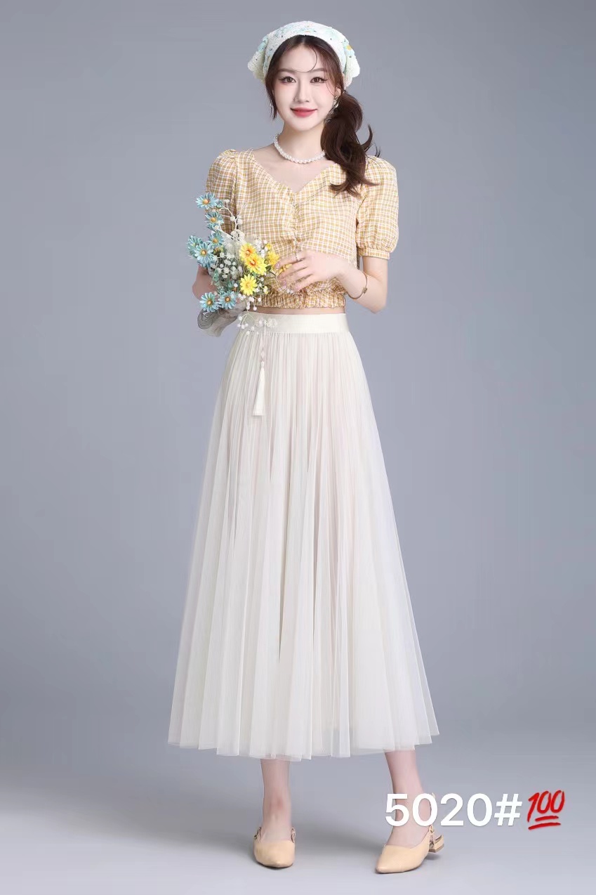 5020 # 杏 均码 浪漫复古典雅高贵纯色垂感网纱半身裙 A字修身版型,包容你内心的不可能 腿部缺陷统统消失不见 高腰加宽设计 提高腰线更显瘦灵动 垂顺裙摆 增加整体设计感舒适透气 更自由