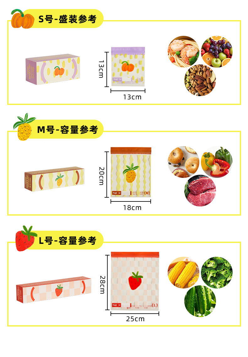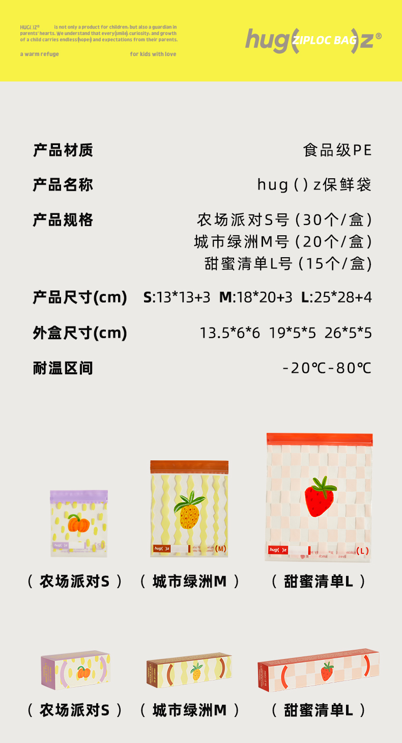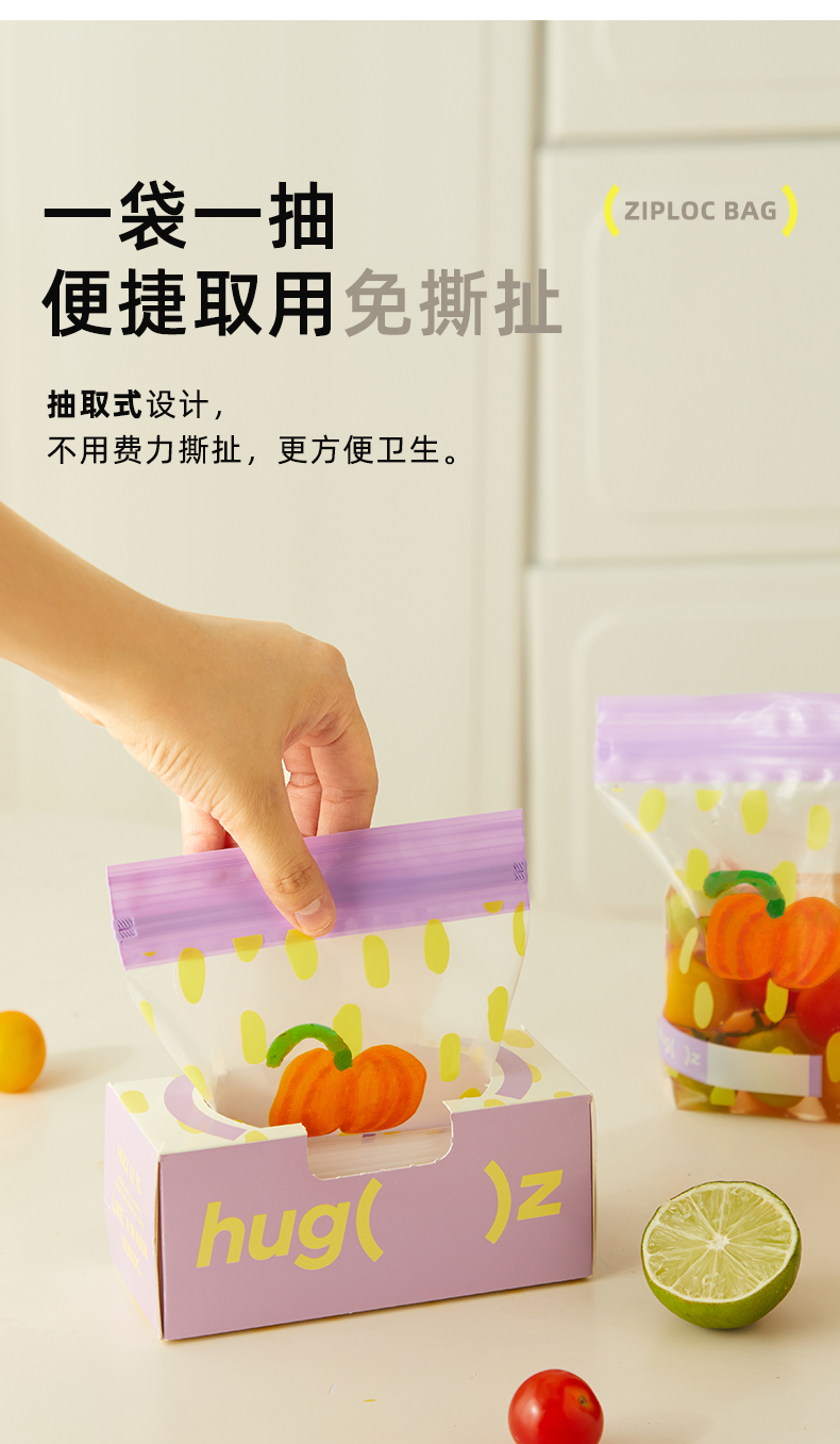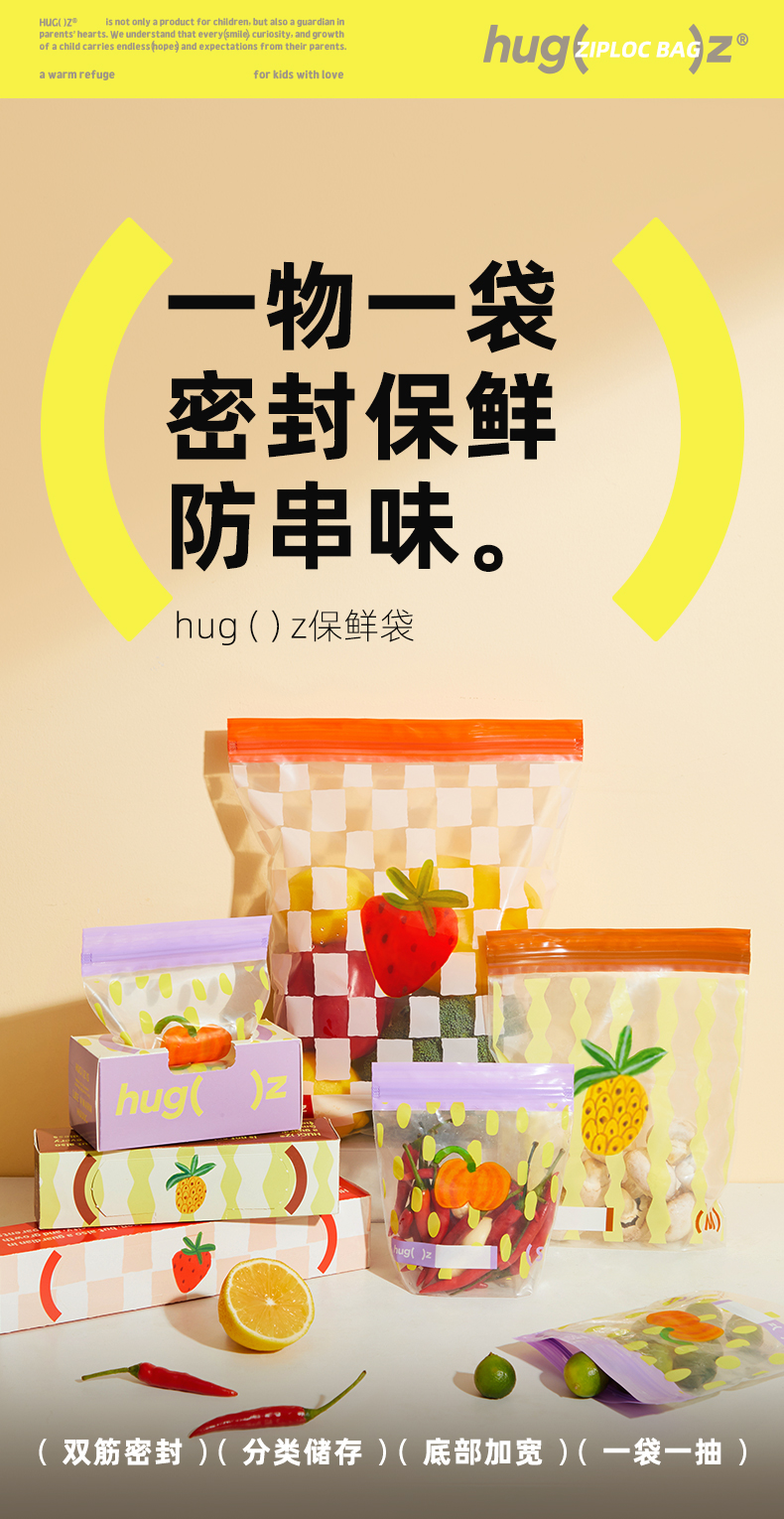 hugz保鲜袋食品级密封透明多规格加厚收纳自封袋家用冰箱收纳袋子★弥鹿