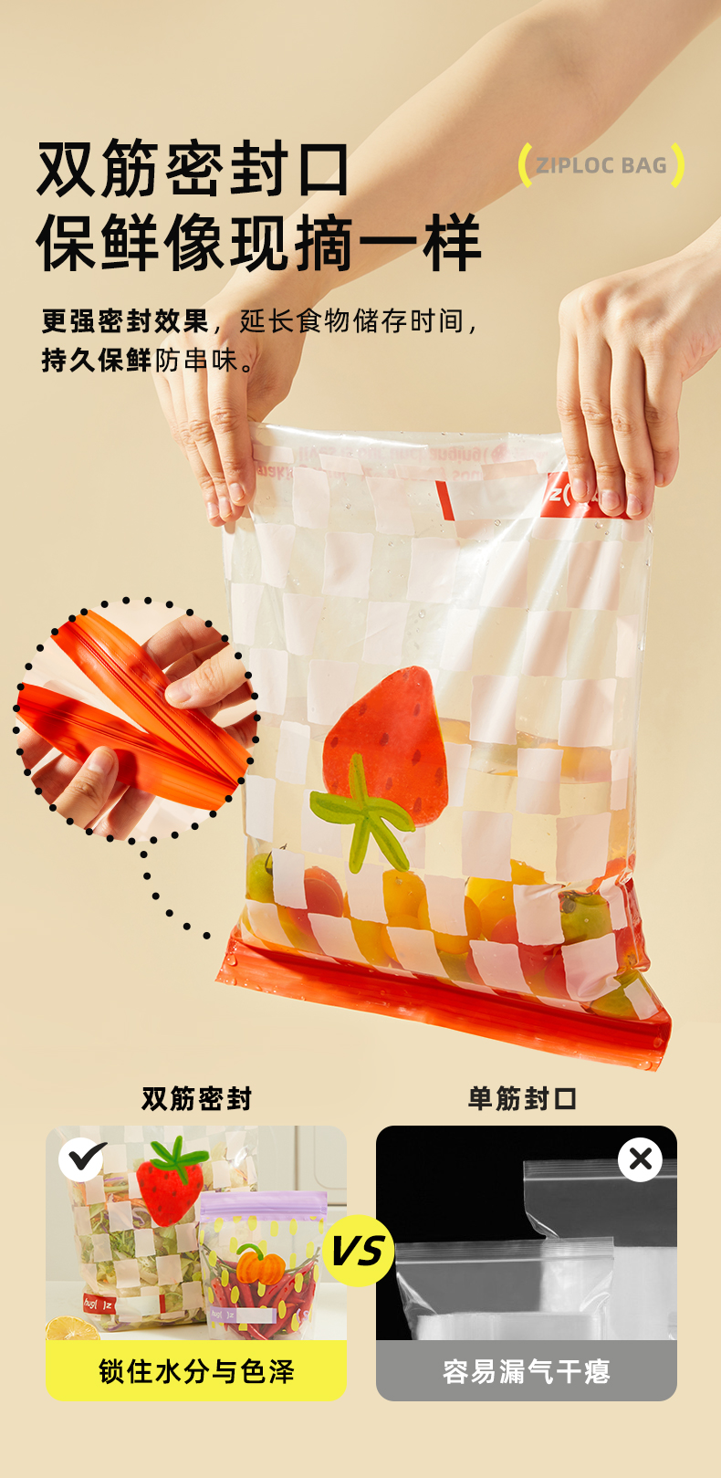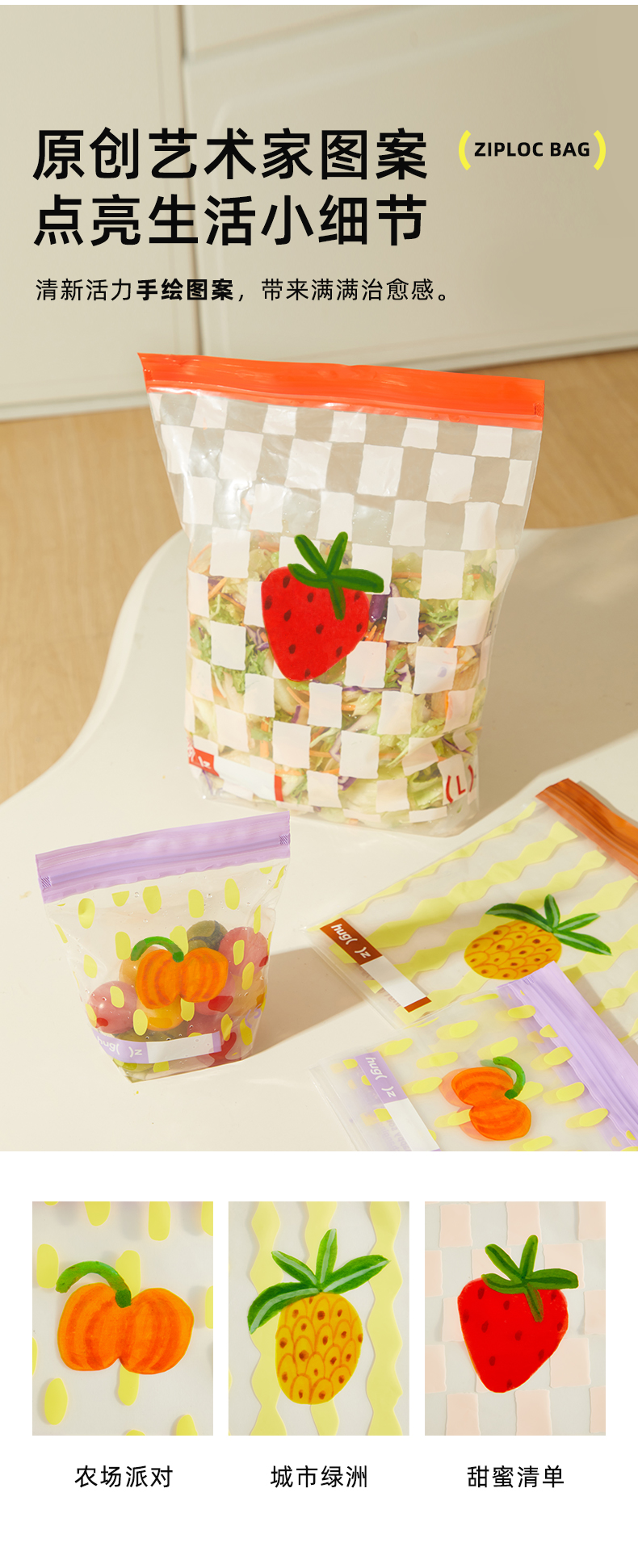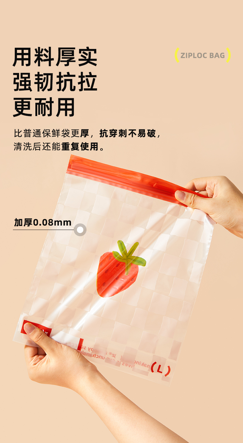 hugz保鲜袋食品级密封透明多规格加厚收纳自封袋家用冰箱收纳袋子★弥鹿