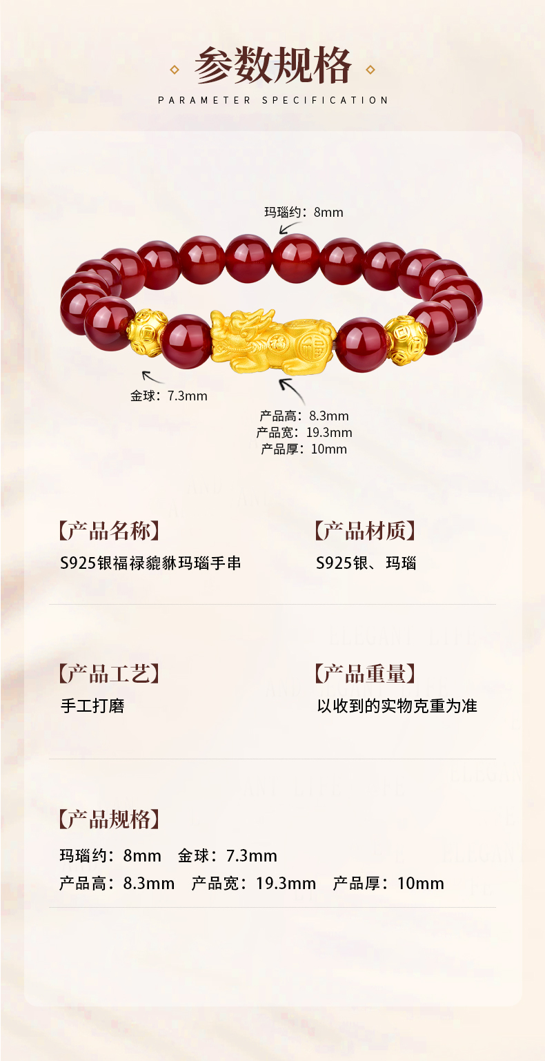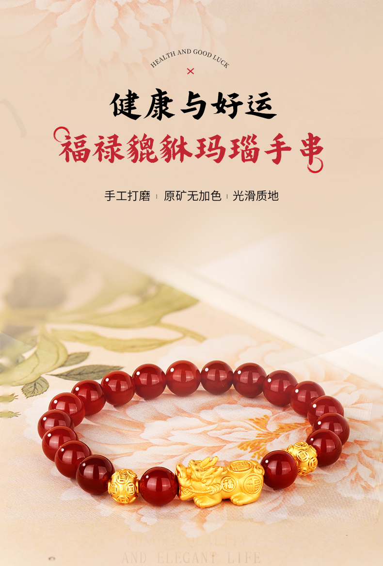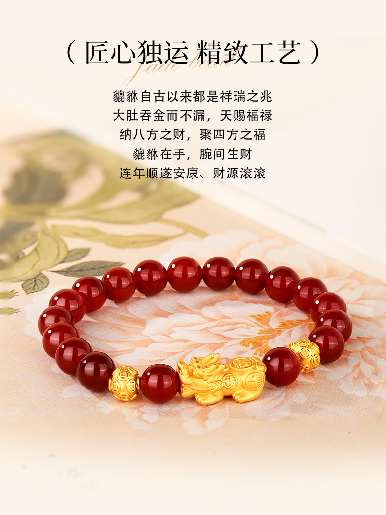 金六福吉祥S925银福禄貔貅玛瑙手串JLFYSC12568★