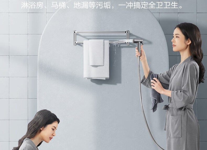 九牧JOMOO 枪灰方形置物喷枪自动除垢增压钢琴按键36602-536/HBS-1