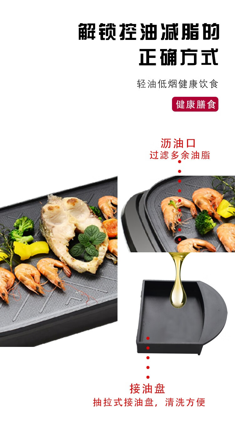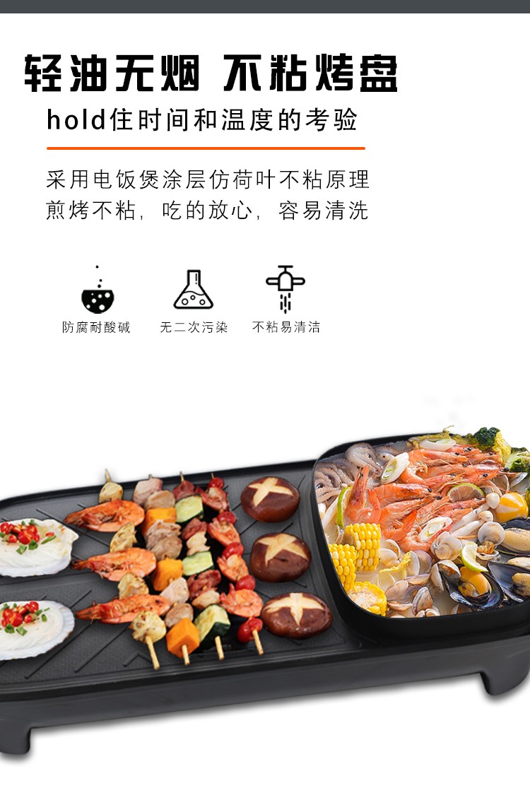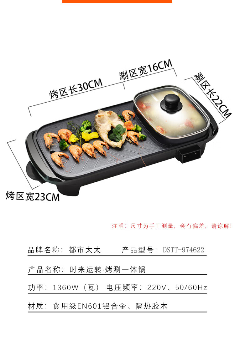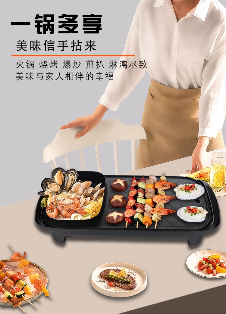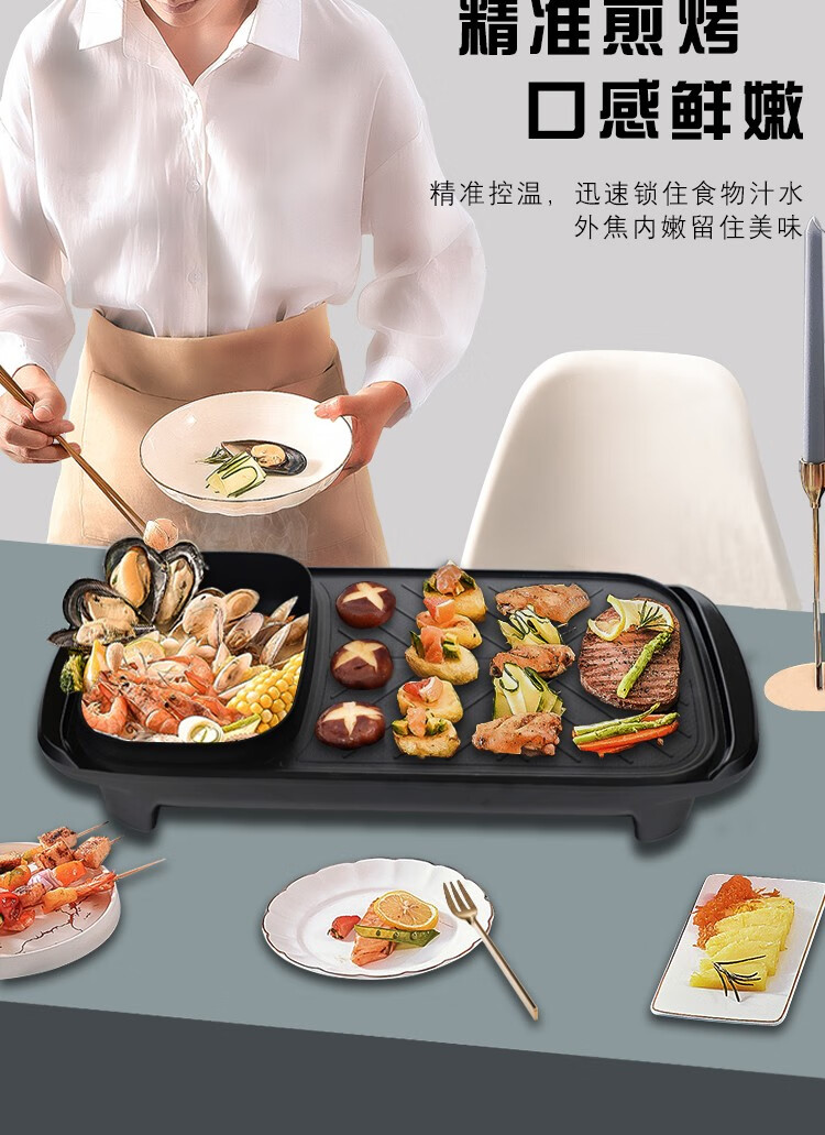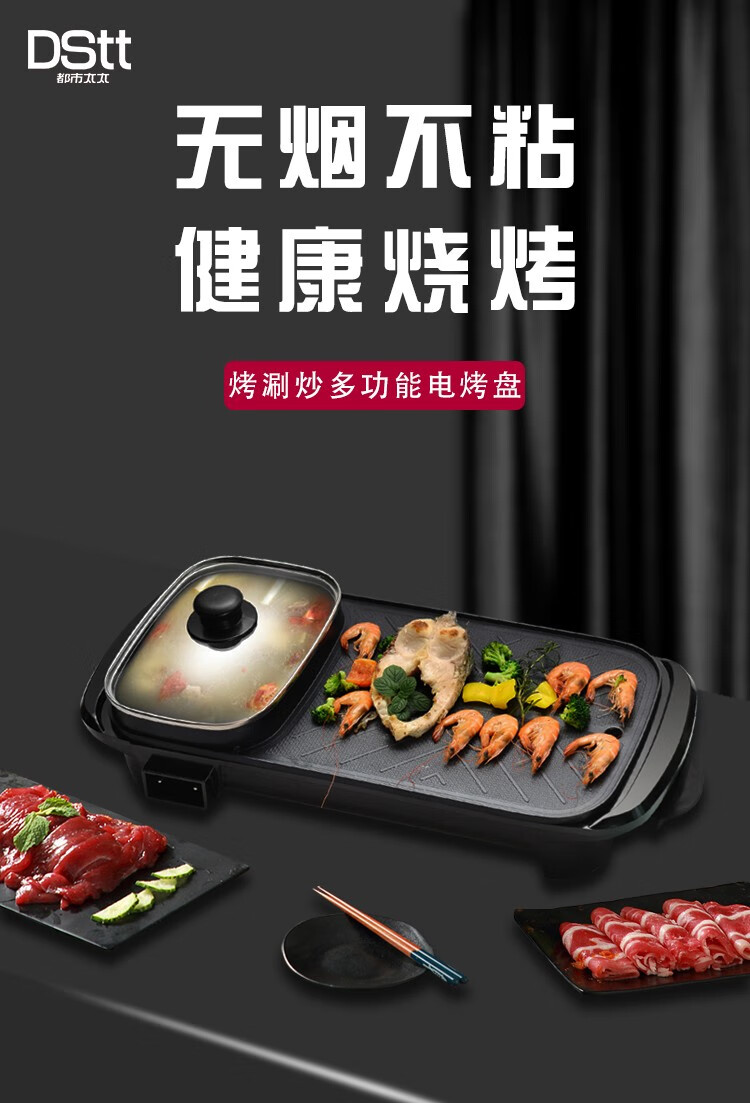 都市太太食来运转烤涮一体机家用小电烤锅涮锅多功能无烟烤肉机韩式家用电烤盘_黑色_1层
