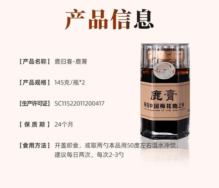 来自中国梅花鹿之乡 鹿归春 鹿膏 145g*2瓶