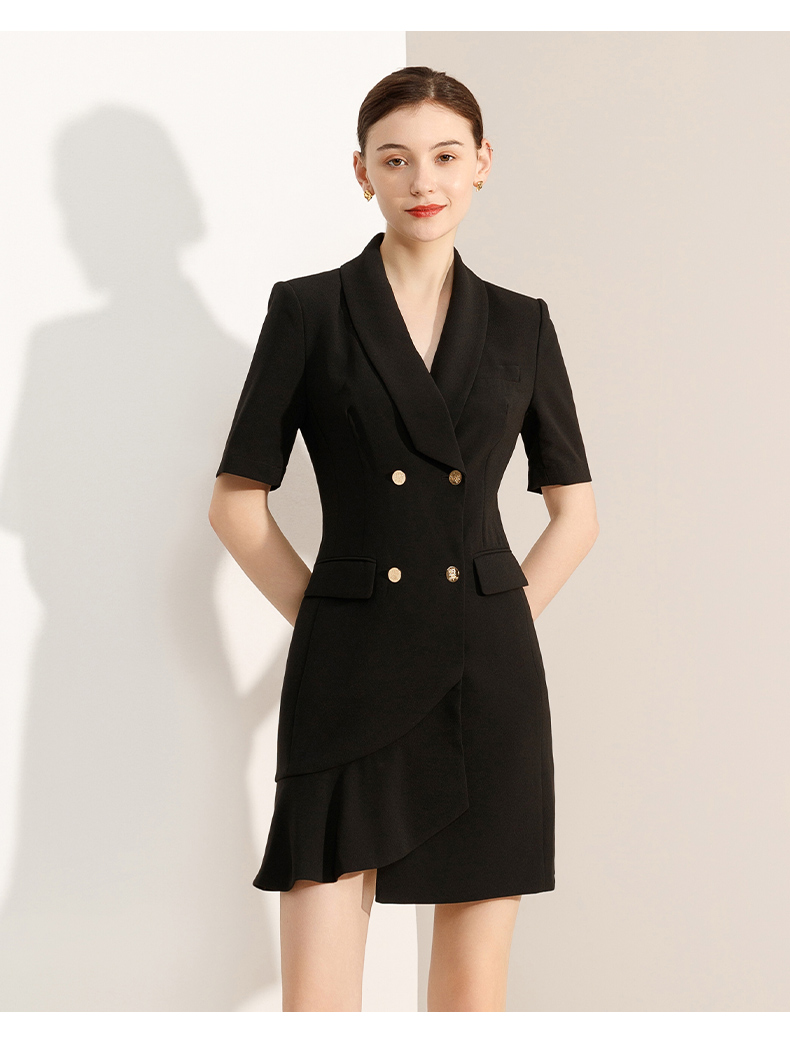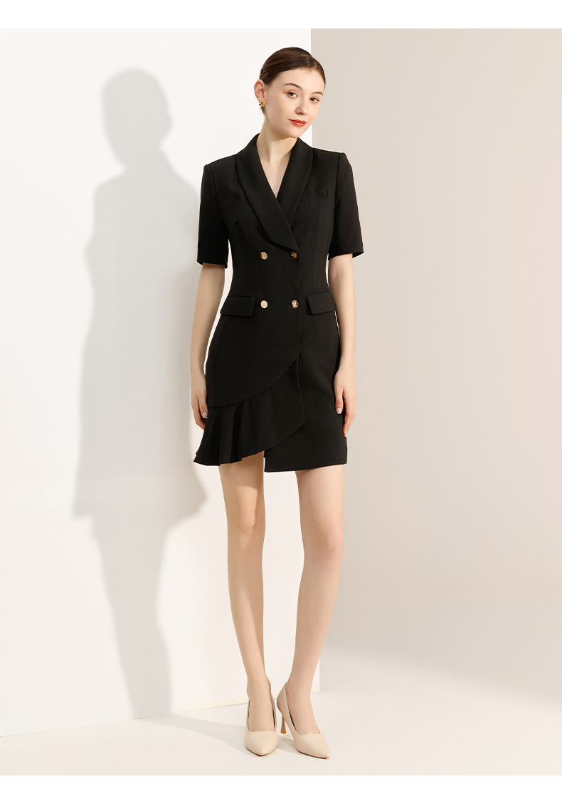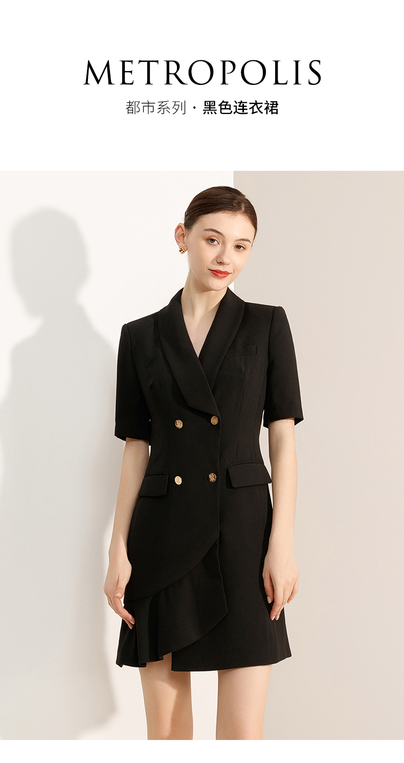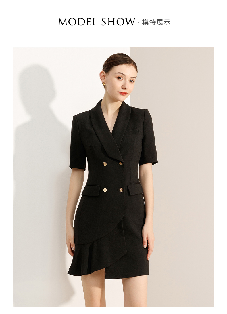 IWY/黑色西装连衣裙女夏季短袖新款高腰名媛气质女神范职业裙子Q11255
