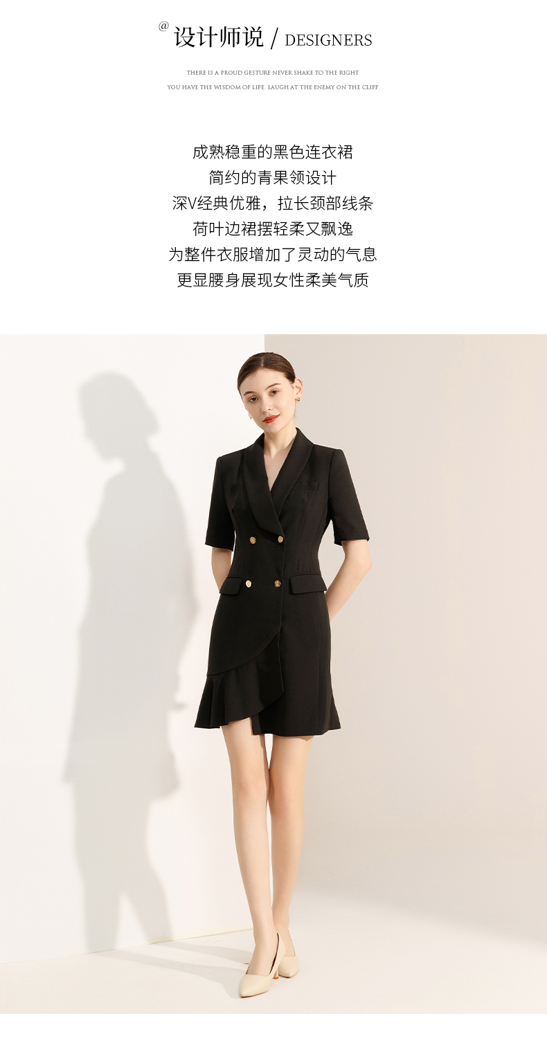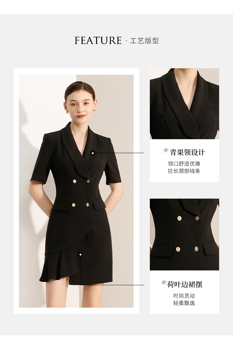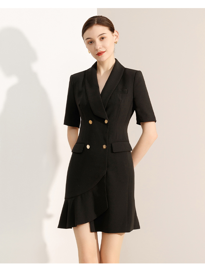 IWY/黑色西装连衣裙女夏季短袖新款高腰名媛气质女神范职业裙子Q11255