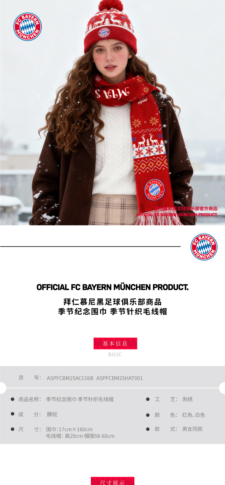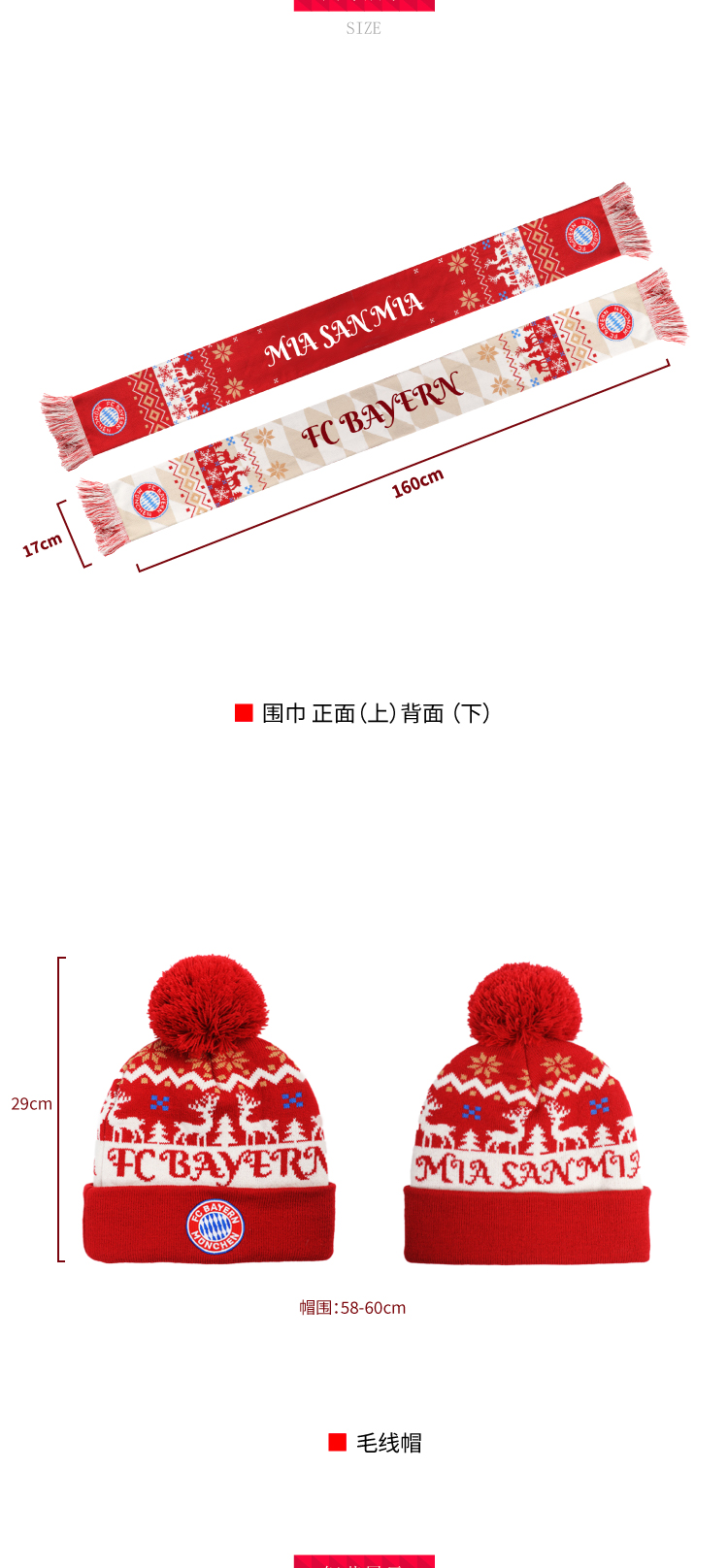 【官方正版】拜仁足球俱乐部丨季节针织毛线帽纪念围巾秋冬氛围感