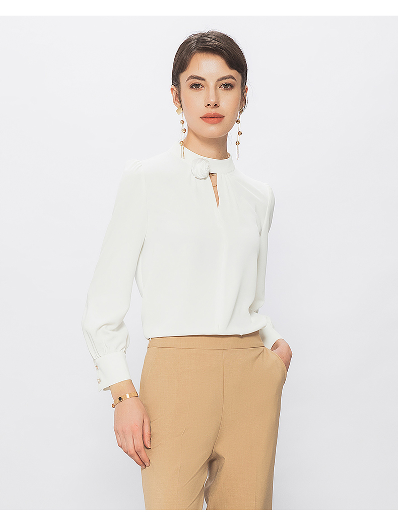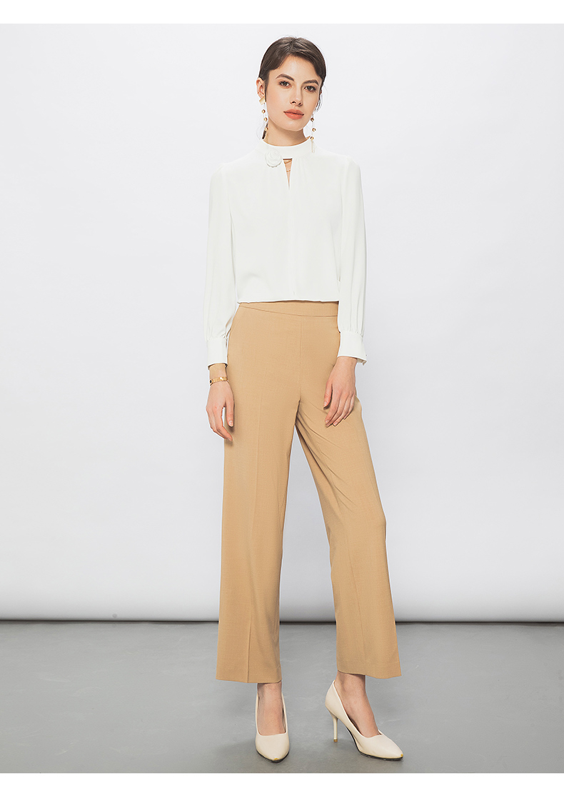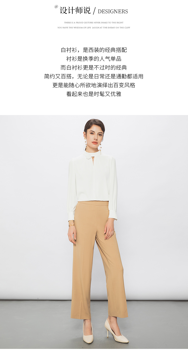 IWY/春夏季新款白色衬衫咖色西裤职业修身气质女神范套装工作服B13122+P13123