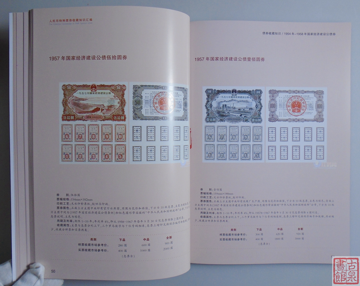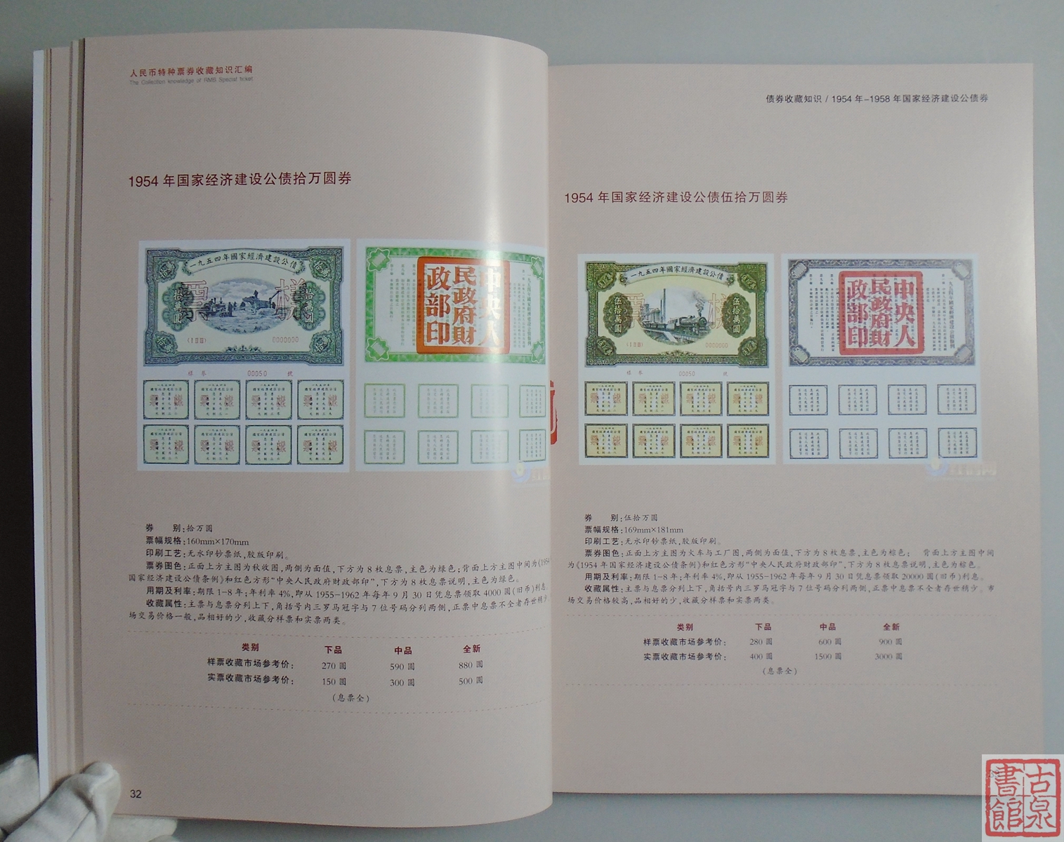 简介:此书包括新中国代金券、债券、国库券、外汇券等人民币特种票券图谱、暗记、冠号及最新的市场交易参考价格。书内图谱全部为实物高清大图,近1:1比例呈现,部分资料弥足珍贵,是特种票券收藏爱好者难得的一本好工具书。