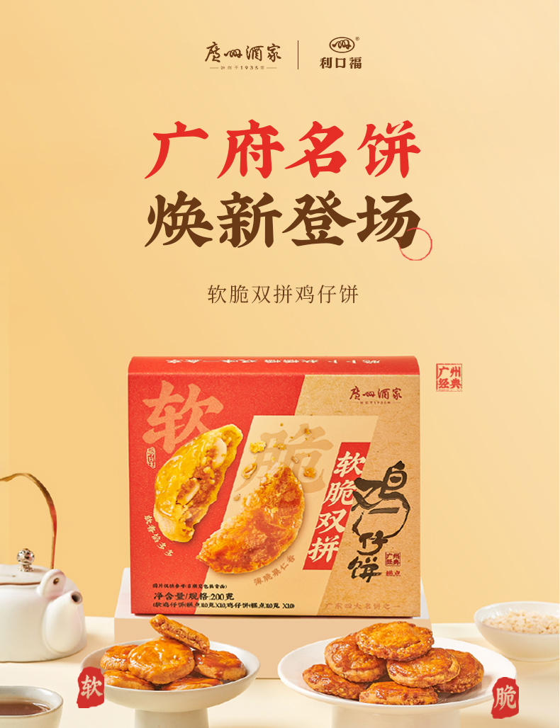 广州酒家 软脆双拼鸡仔饼2盒老字号糕点饼酥零食点心下午茶节日伴手礼