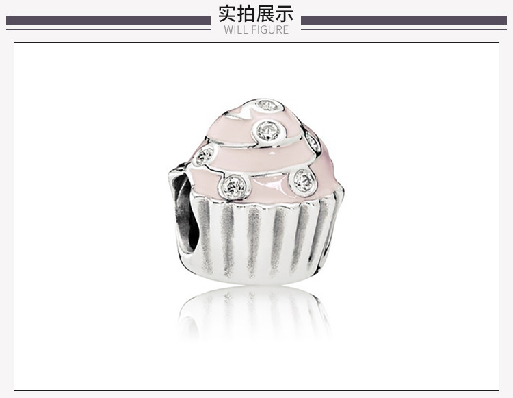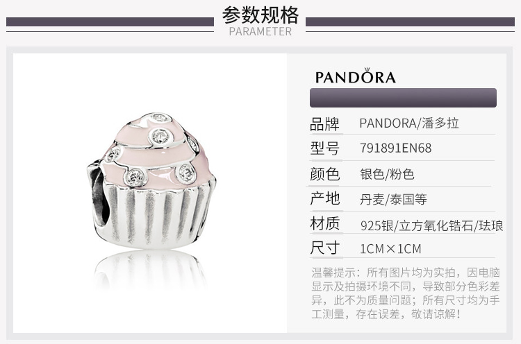 PANDORA/潘多拉 时尚粉色纸杯蛋糕形串珠 791891EN68 粉色/银色