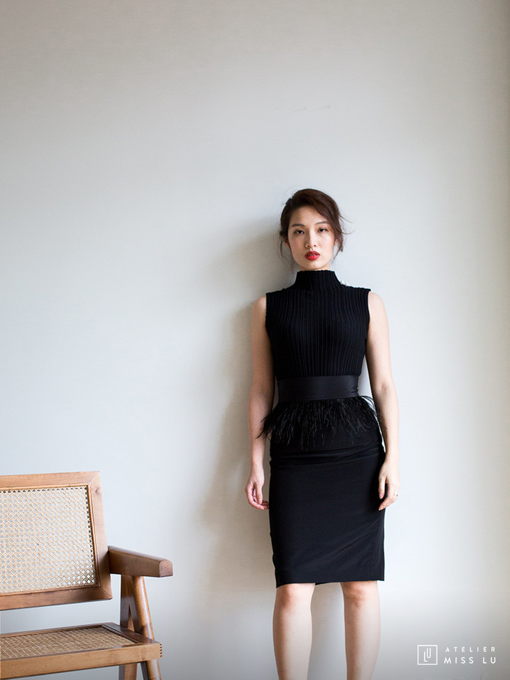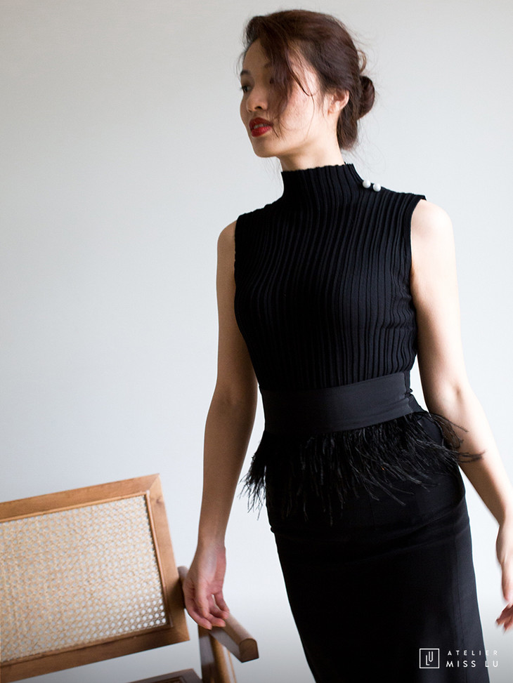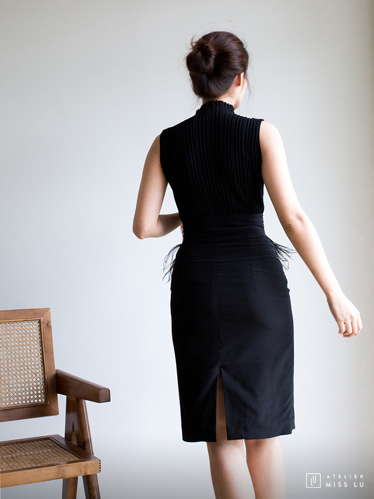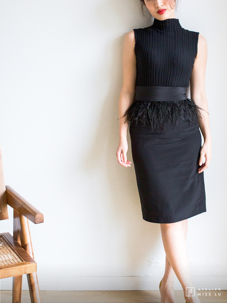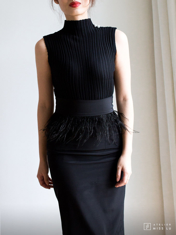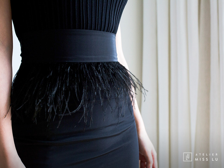 AtelierMissLu / Virgina-光泽黑羽毛装饰半裙