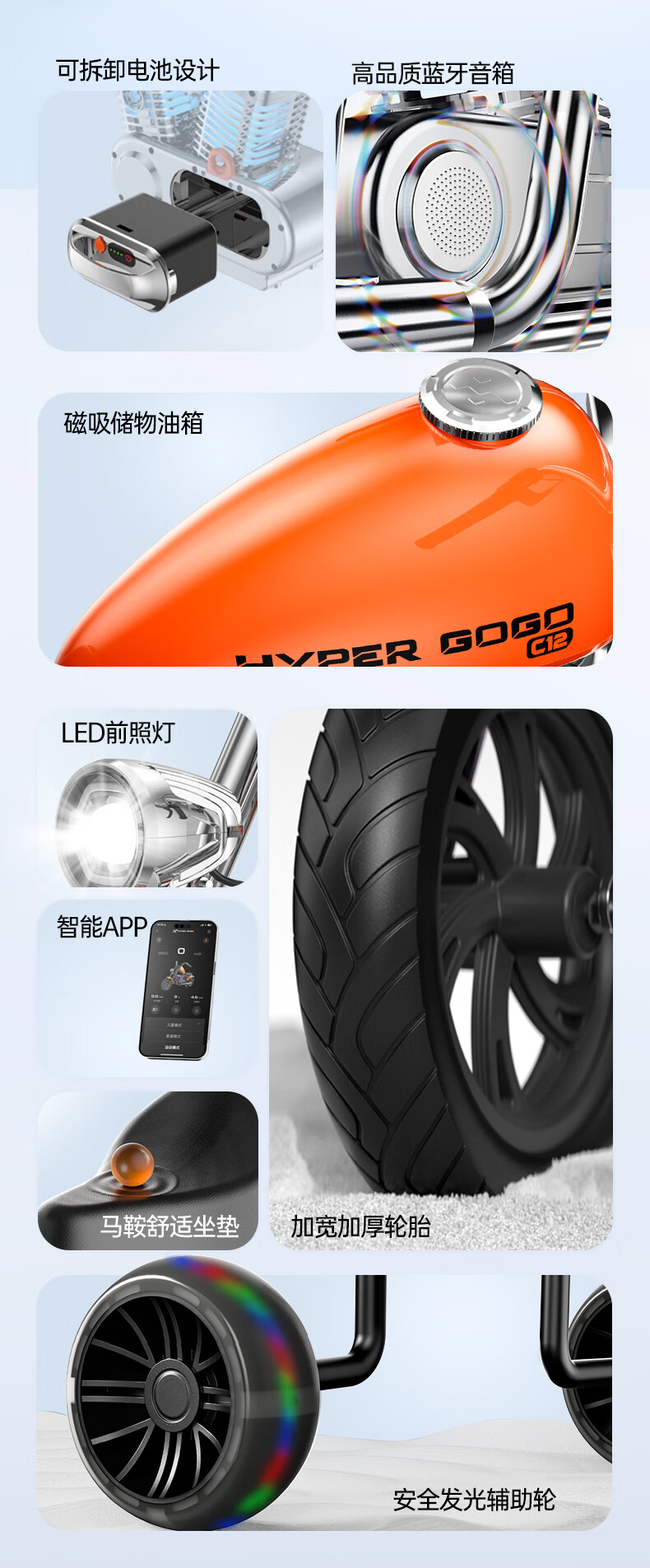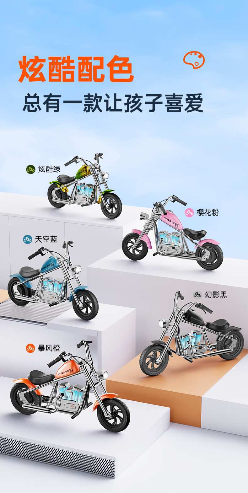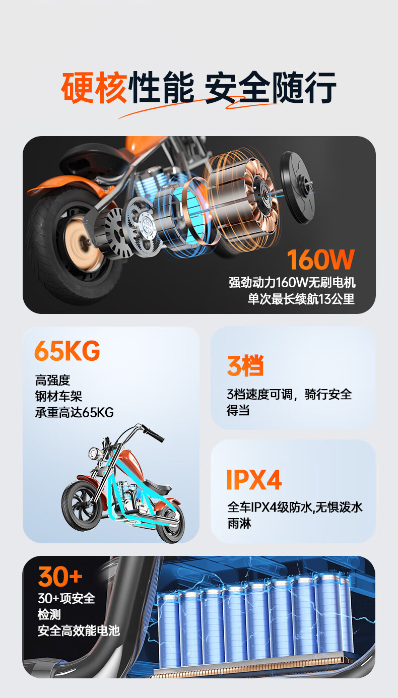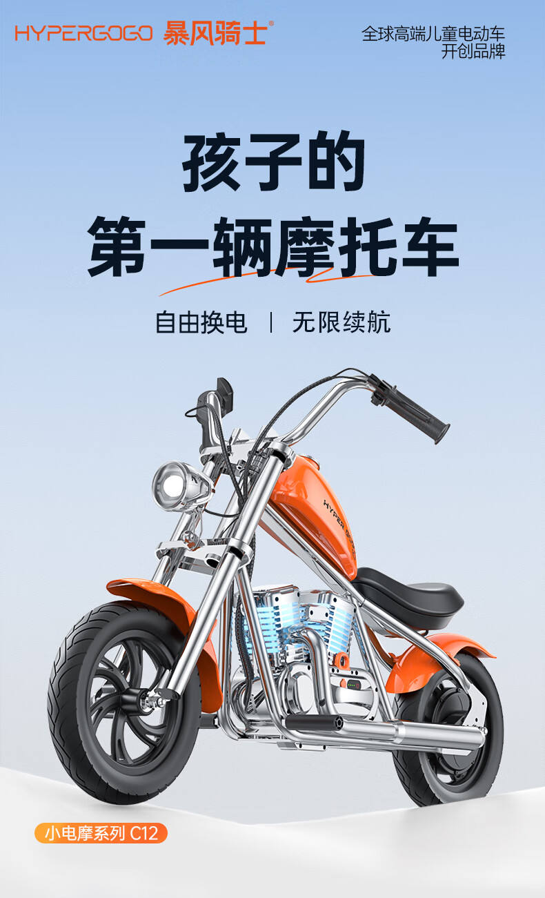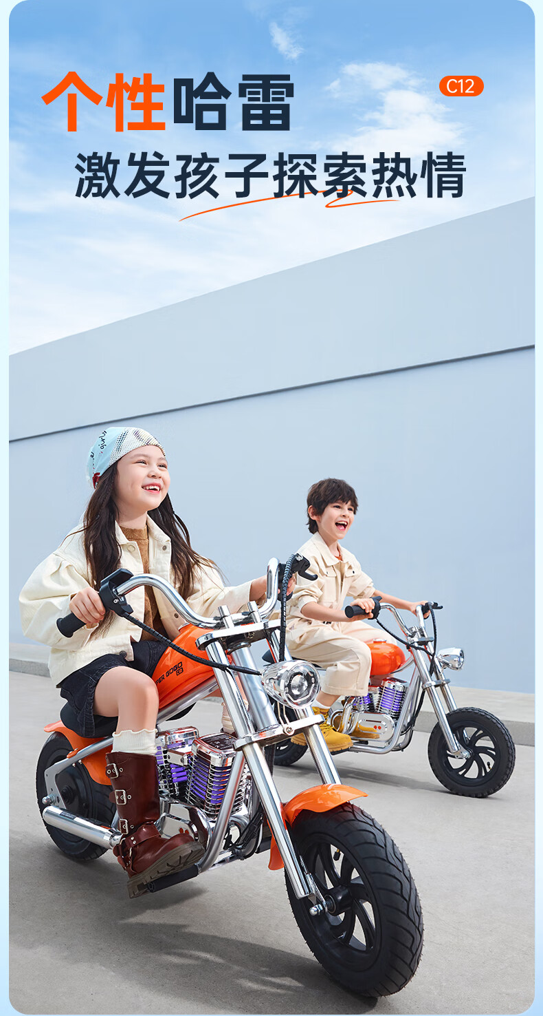 暴风骑士儿童电动摩托车小哈雷两轮电动车代步平衡车玩具童车尊享版