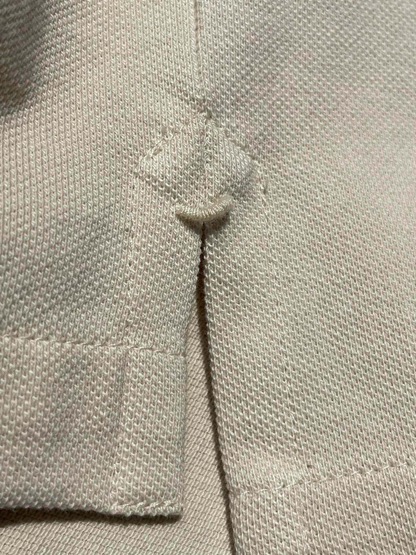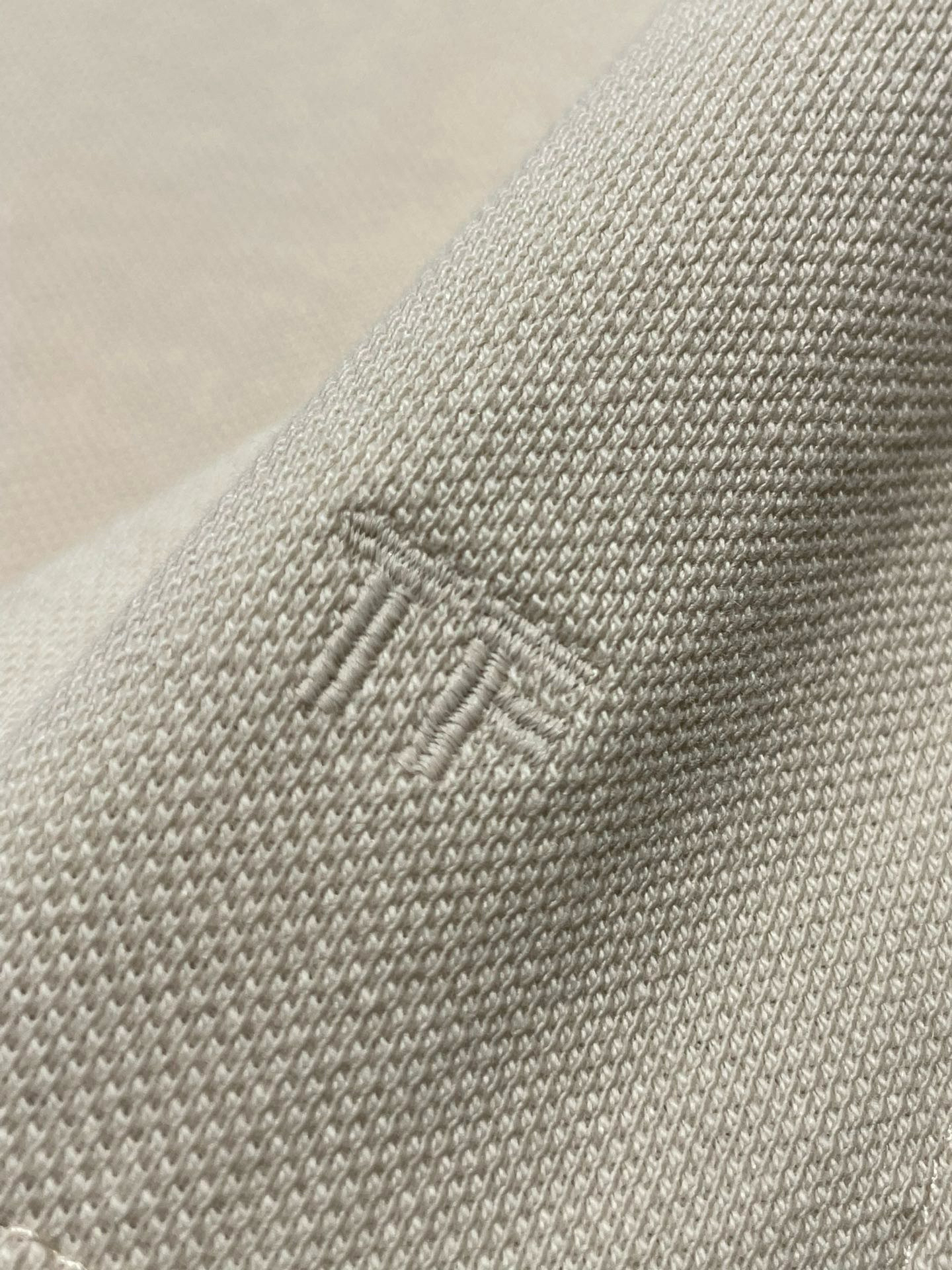淡米色,优雅儒雅,淡人专属。经典polo短袖的版型,色调的优雅,版型的和谐,融合的恰到好处,仔细看刺绣和前短后长的版型,开叉处的极致做工,袖口的重工螺纹,男装polo短袖的天花板级别
