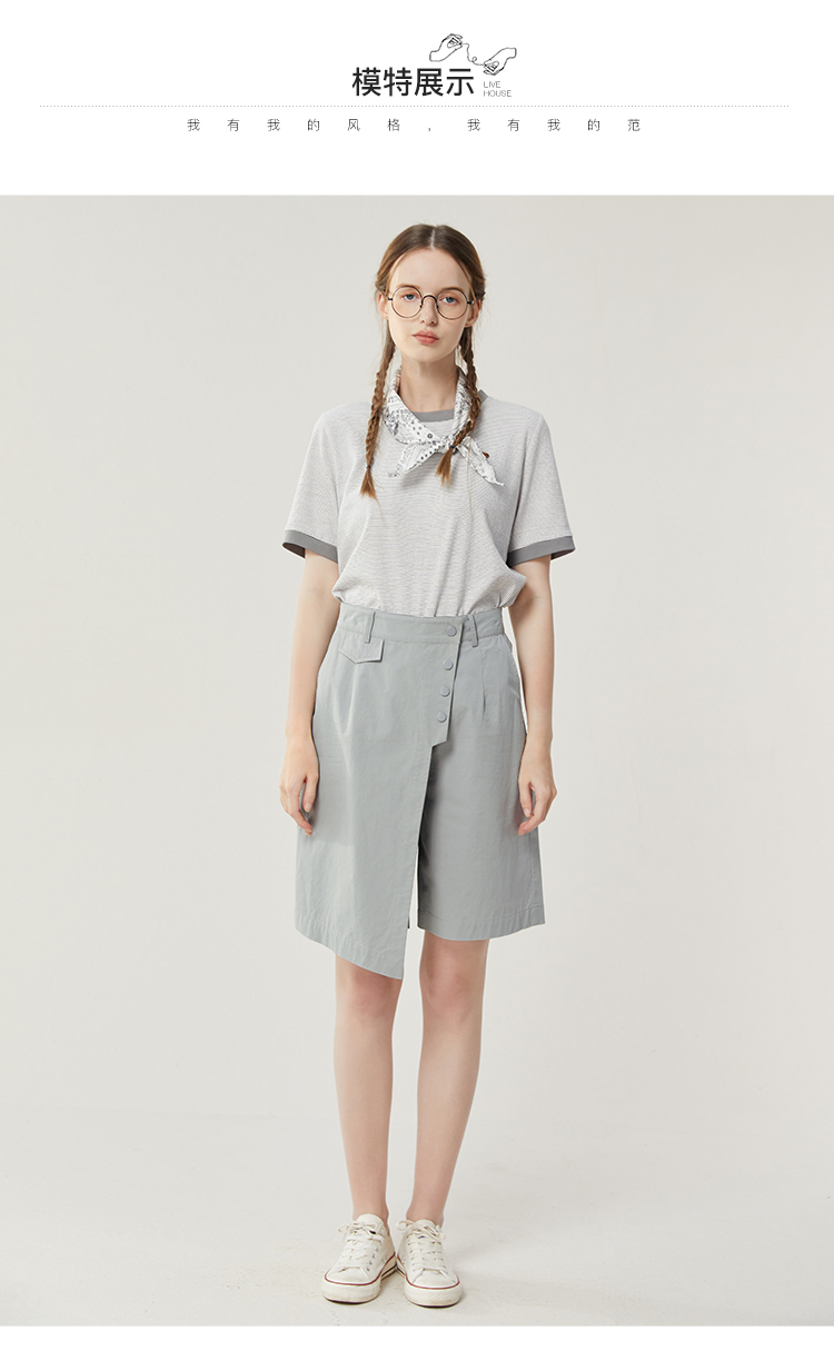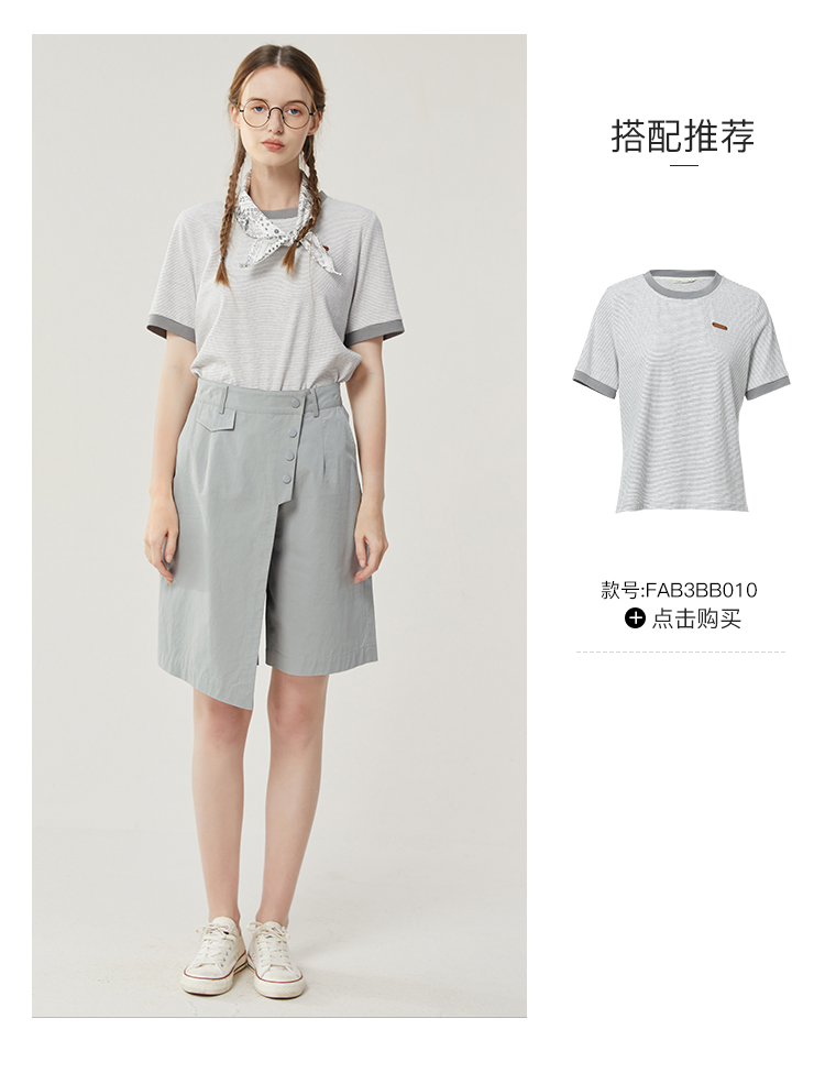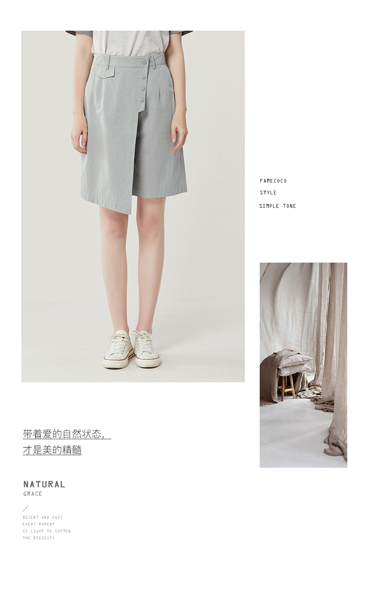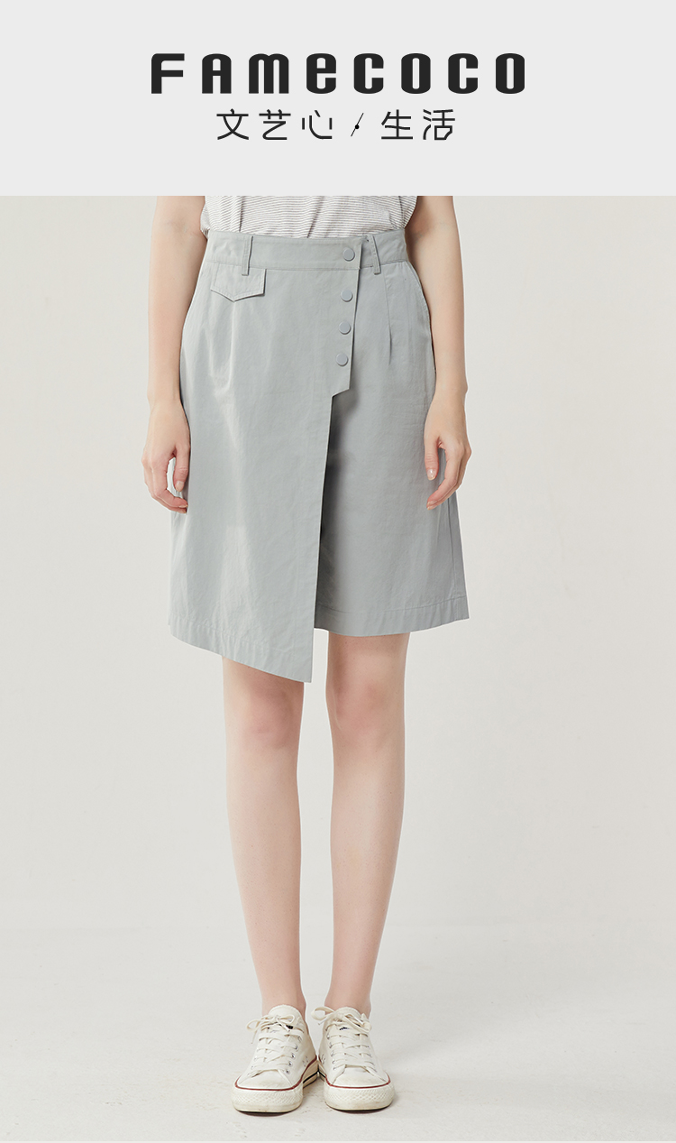 famecoco范可儿不规则拼接半身裤裙女新款夏松紧腰五分裤短裤FAB3GE001