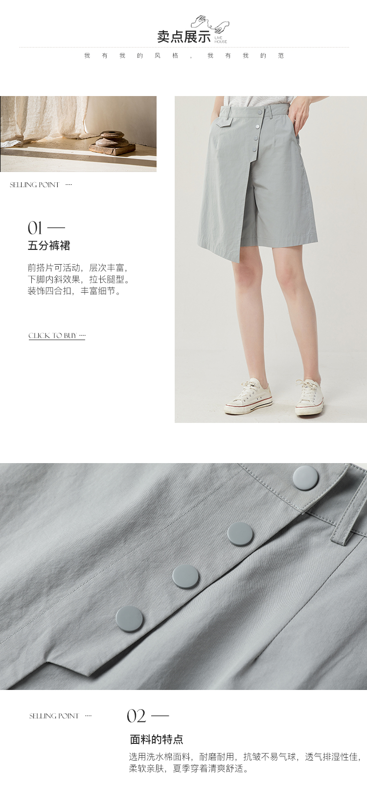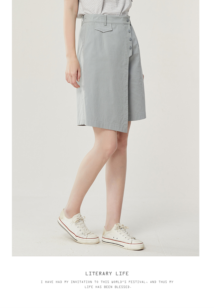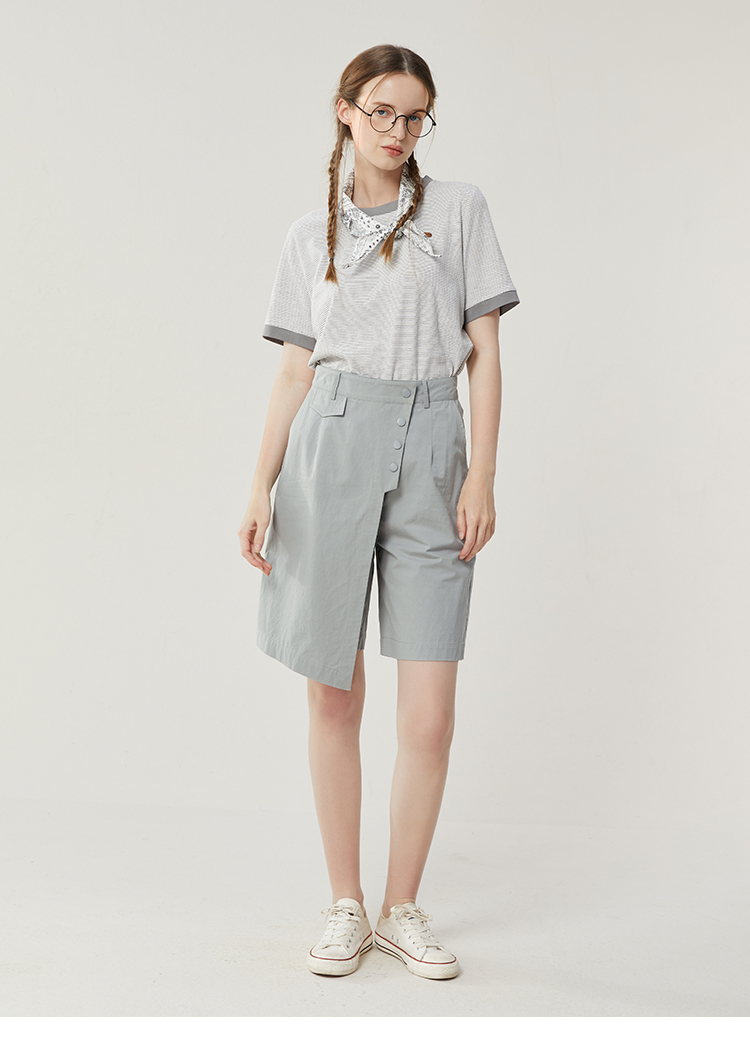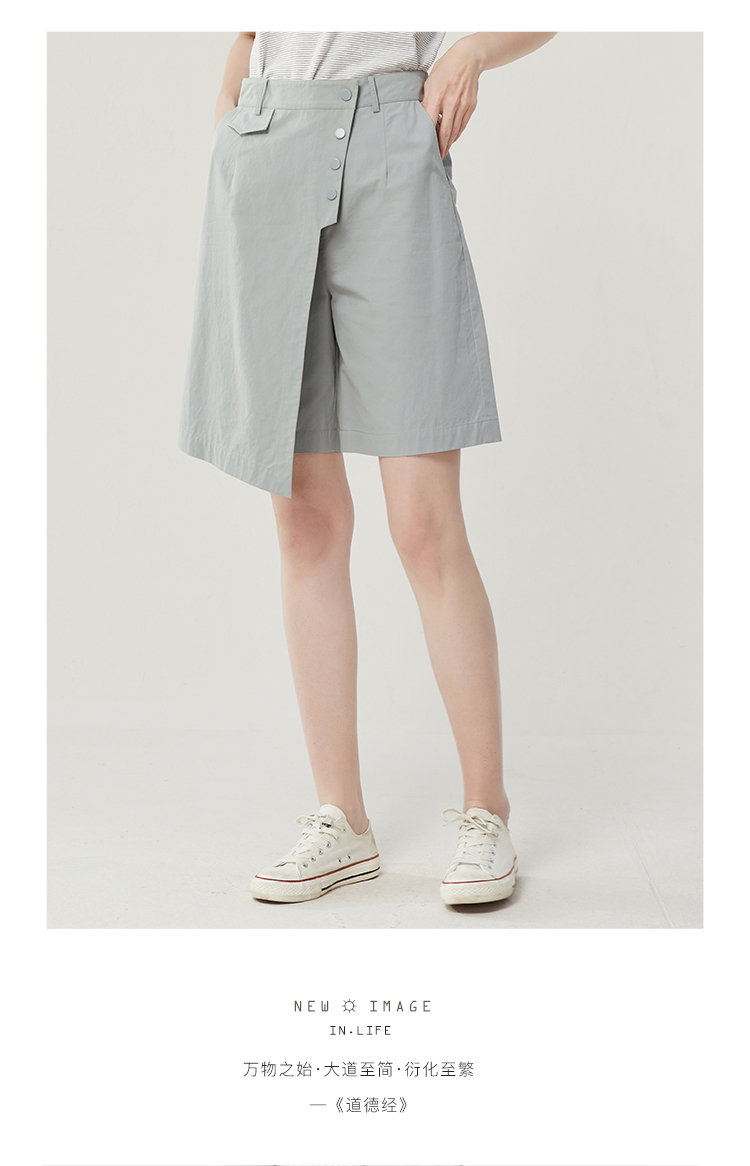 famecoco范可儿不规则拼接半身裤裙女新款夏松紧腰五分裤短裤FAB3GE001