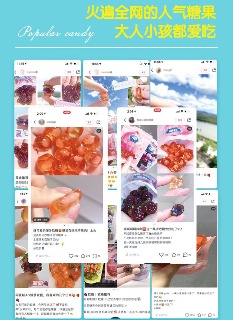 阿麦斯4D葡萄爆汁软糖 65g/袋