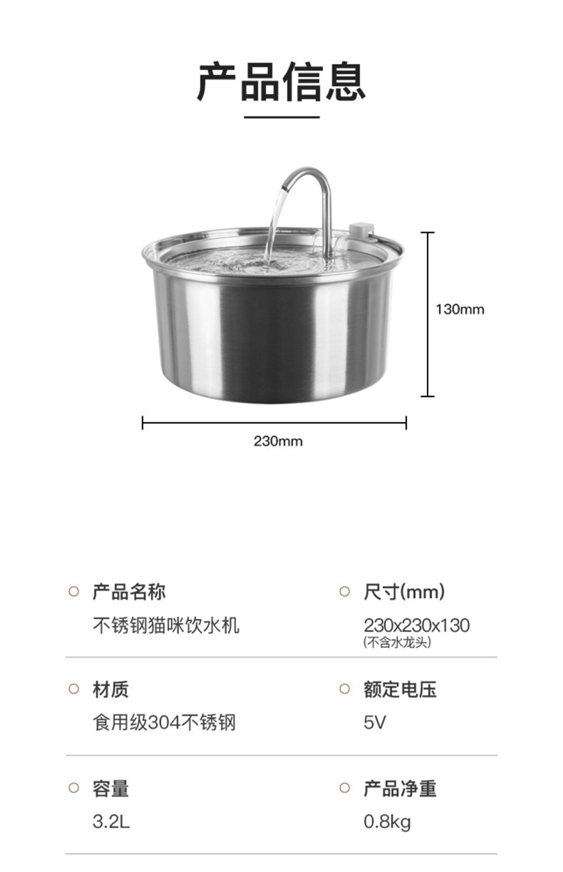 304不锈钢饮水机 循环宠物饮水机 圆形 usb接口