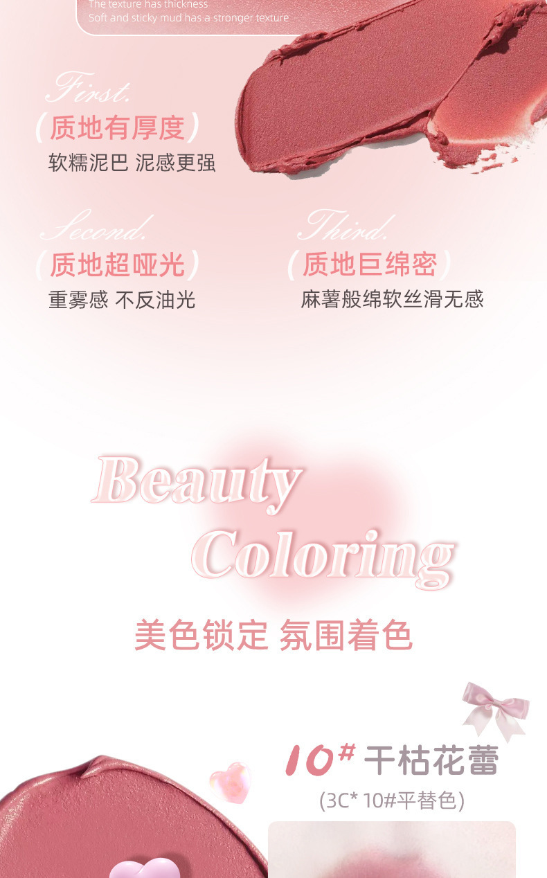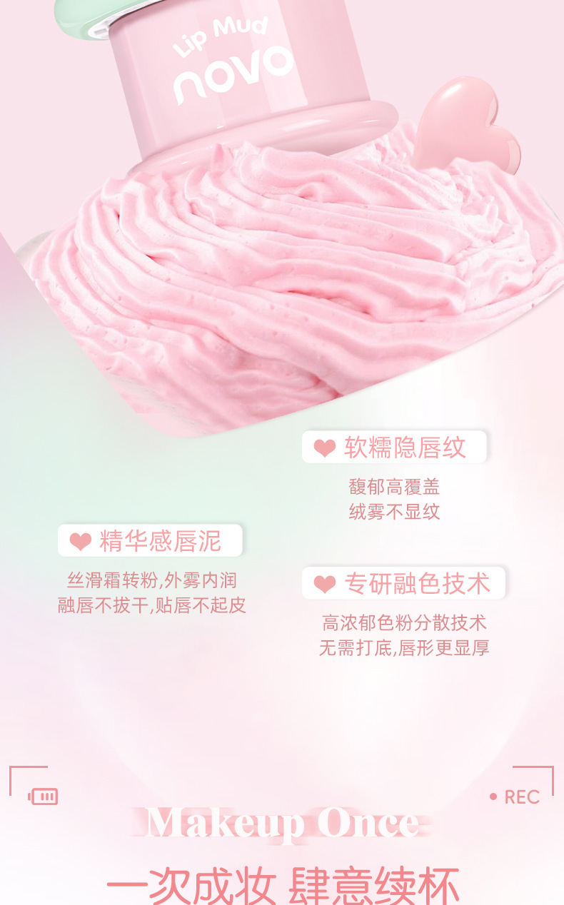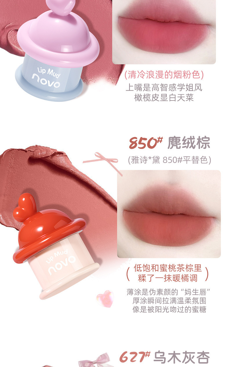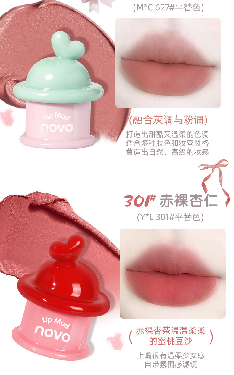 【绵绵顺滑!绒雾不拔干】NOVO甜心悸动雾感唇泥秋冬哑光雾面素颜显白学生口红防水不易掉色。xa
