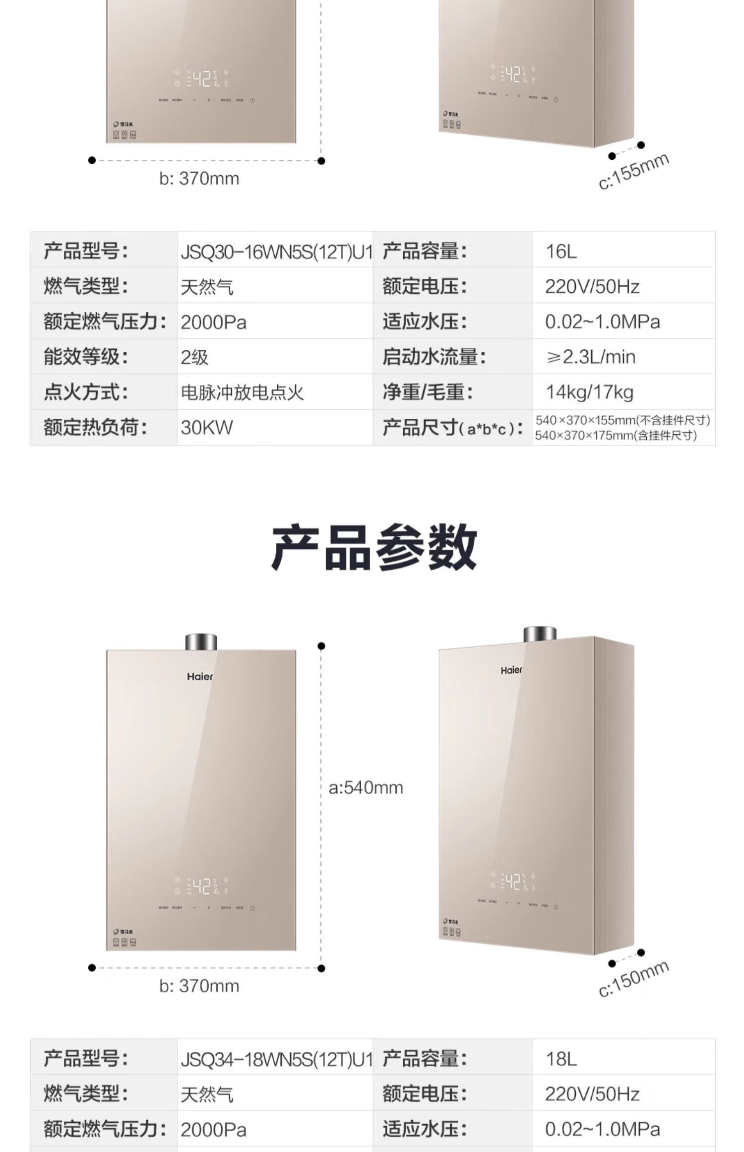 海尔(Haier)18升双增压双循环零冷水燃气热水器天然气WIFI语音智控家用沐浴 【零冷水】 18L JSQ34-18WN5S(12T)U1