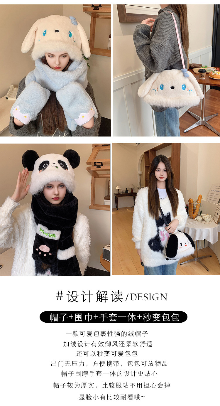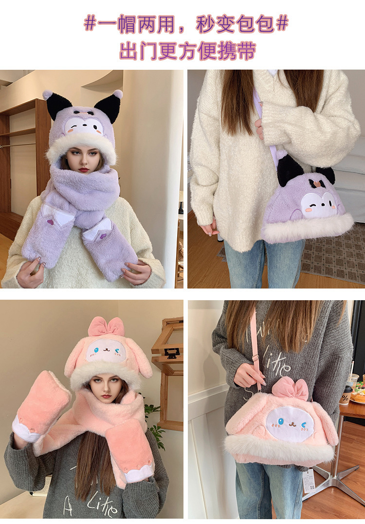 【帽子围巾手套!保暖一步到位】还可以秒变包包,方便携带,三件套保暖蓄温可爱小兔子围脖连帽一体冬季毛绒加厚。rc