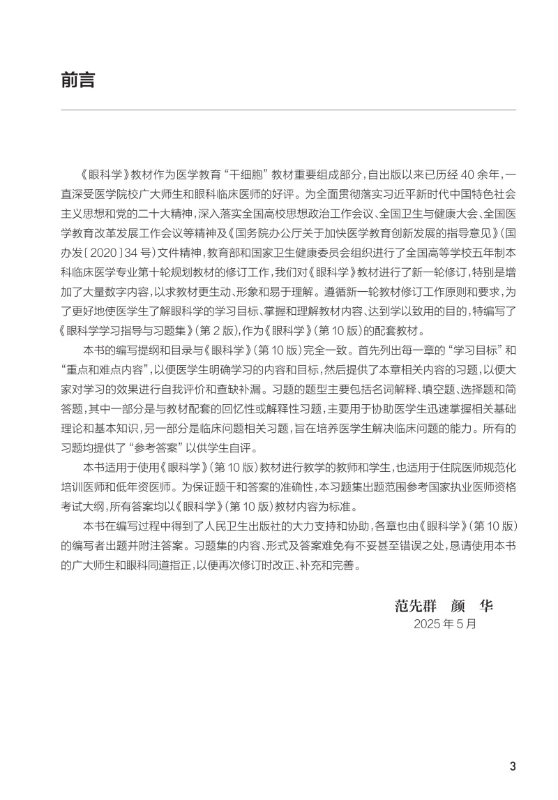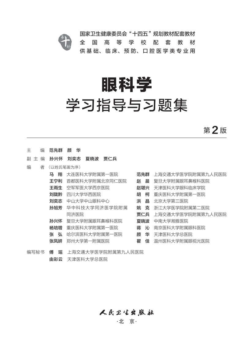 眼科学学习指导与习题集 第2二版 十四五规划教材配套教材全国高等学校配套教材 范先群 颜华 供基础口腔医学类专业用人民卫生出版社