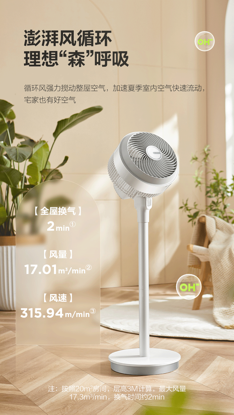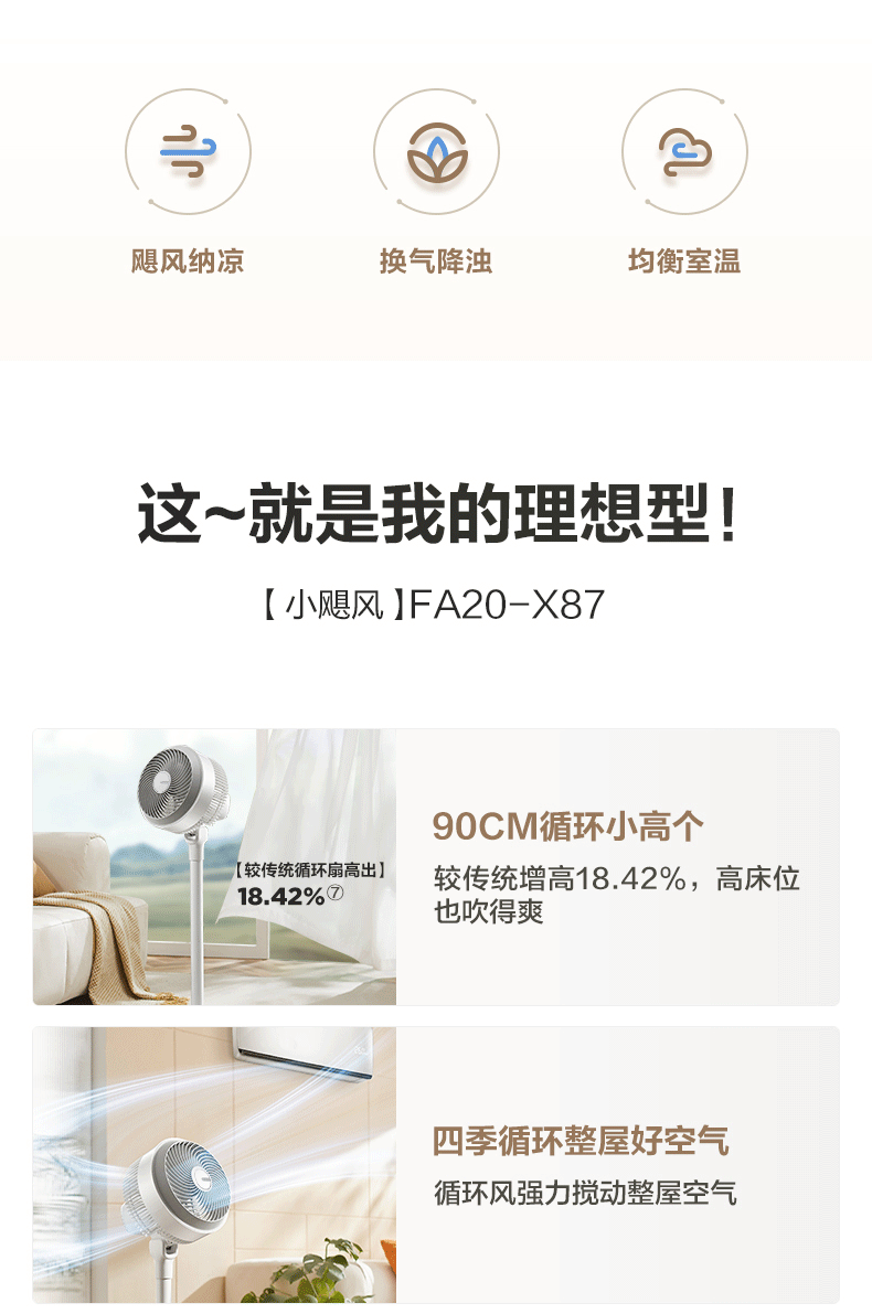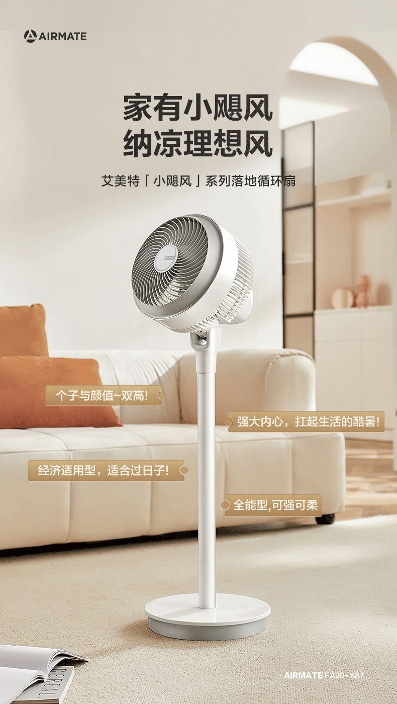 艾美特(AIRMATE)【涡轮换气】空气循环扇 小飓风 家用节能 电风扇 台立式桌面落地扇 3D摆头 纳凉换大风量电扇 FA20-X87
