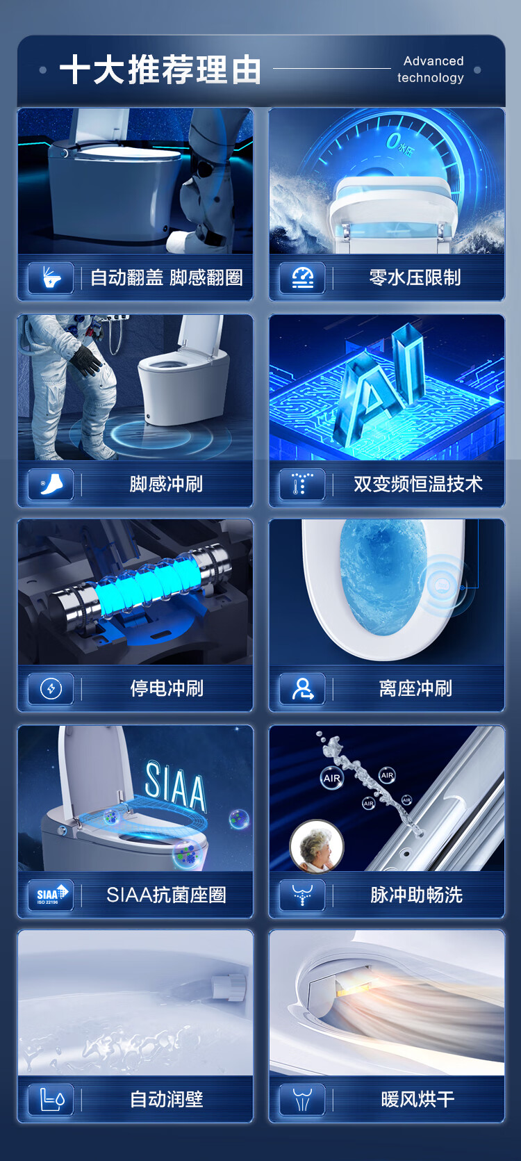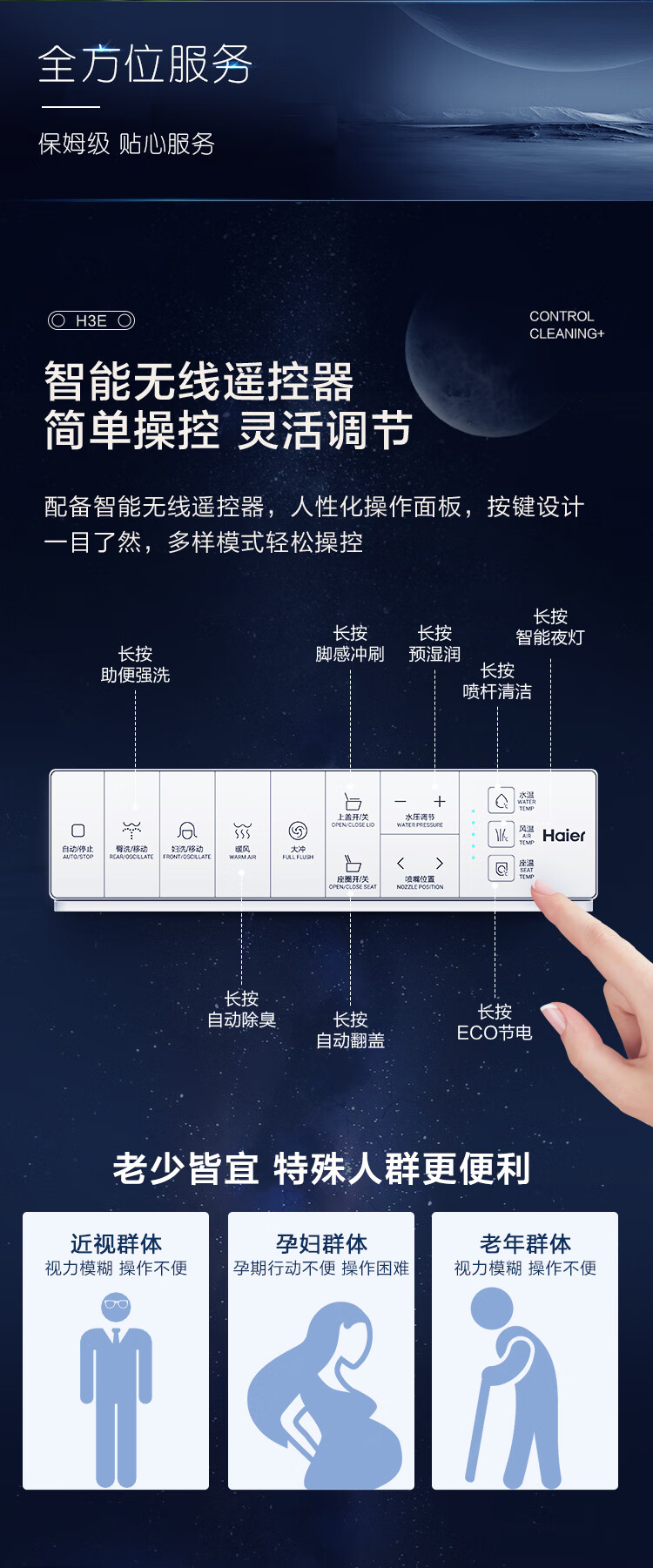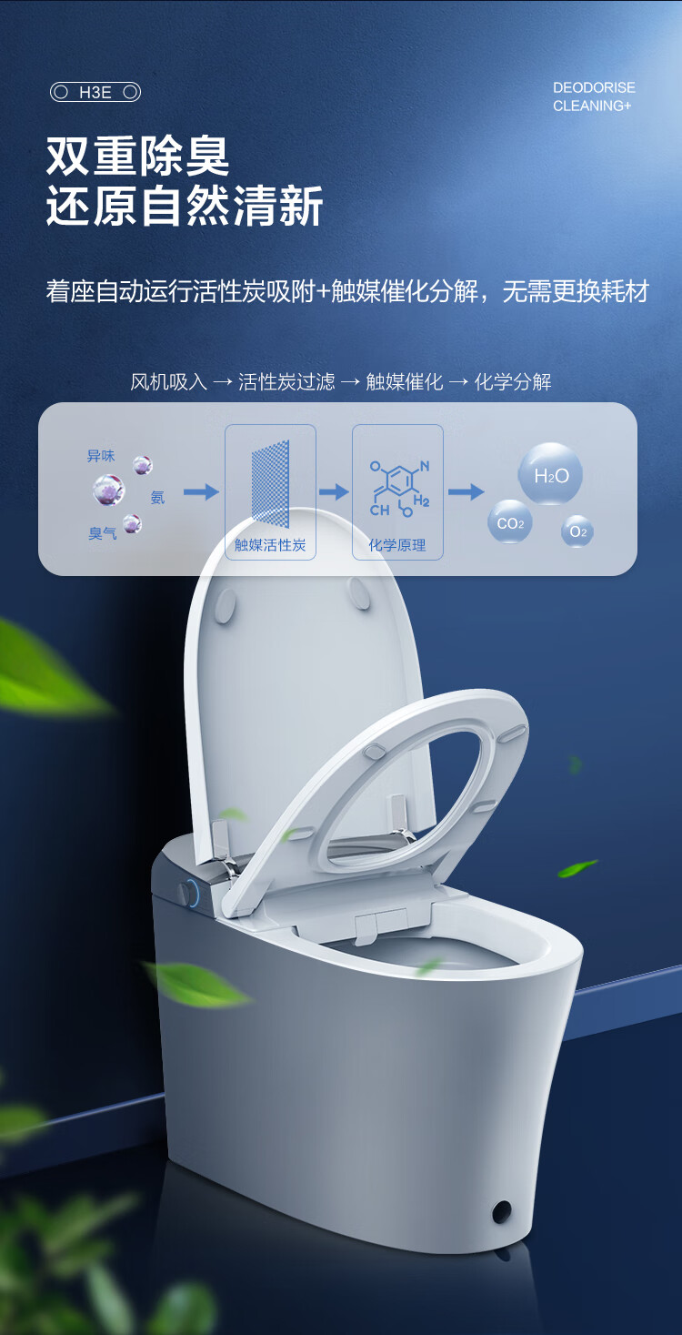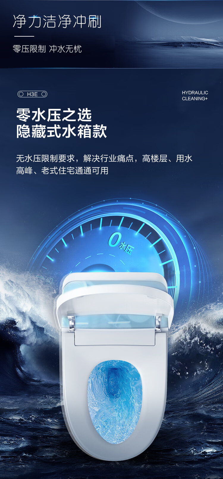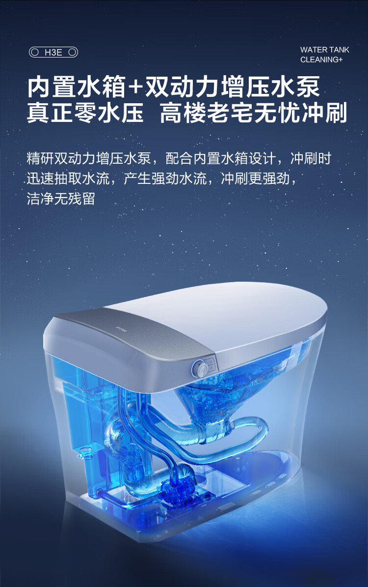 海尔(Haier) 双子星智能马桶一体机 无水压限制自动翻盖款 脚感冲刷带水箱水泵 电动坐便器 H3E 305坑距