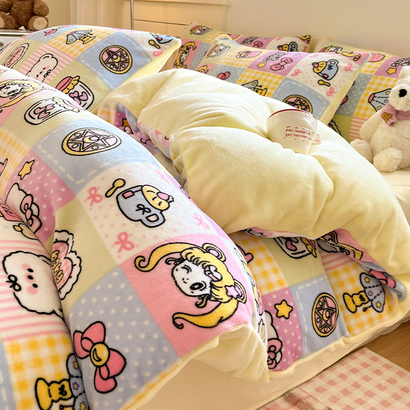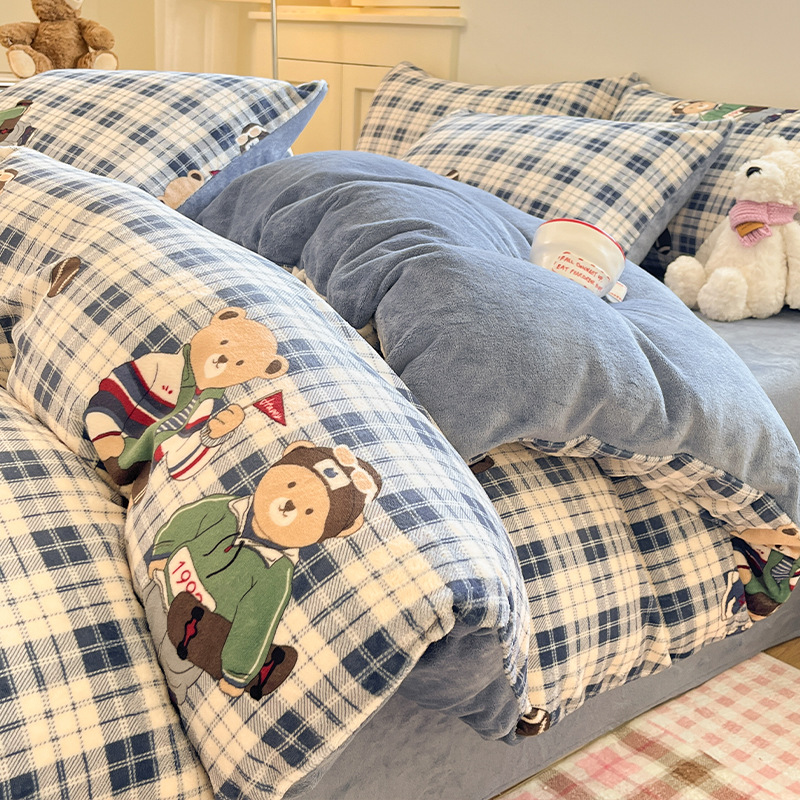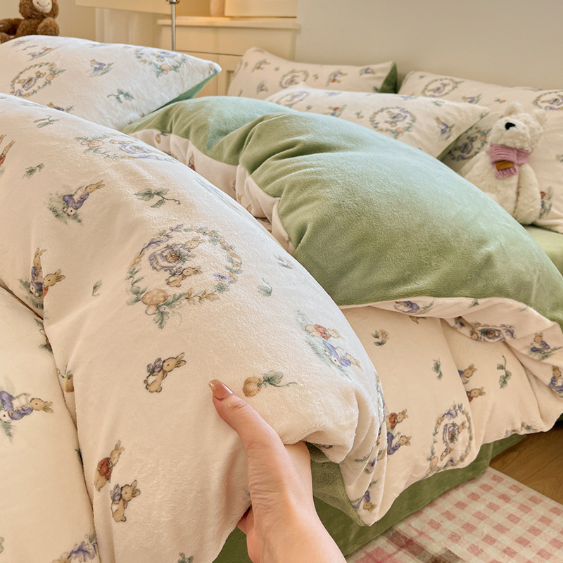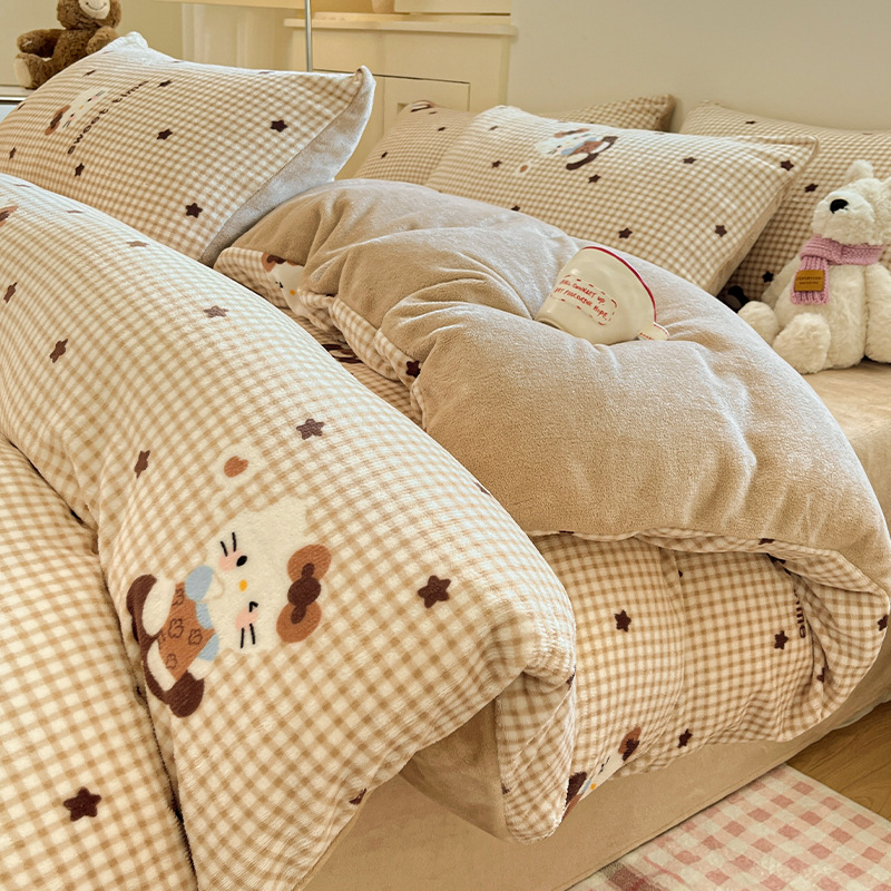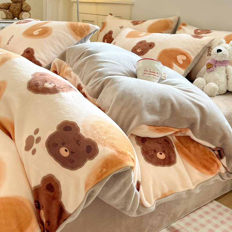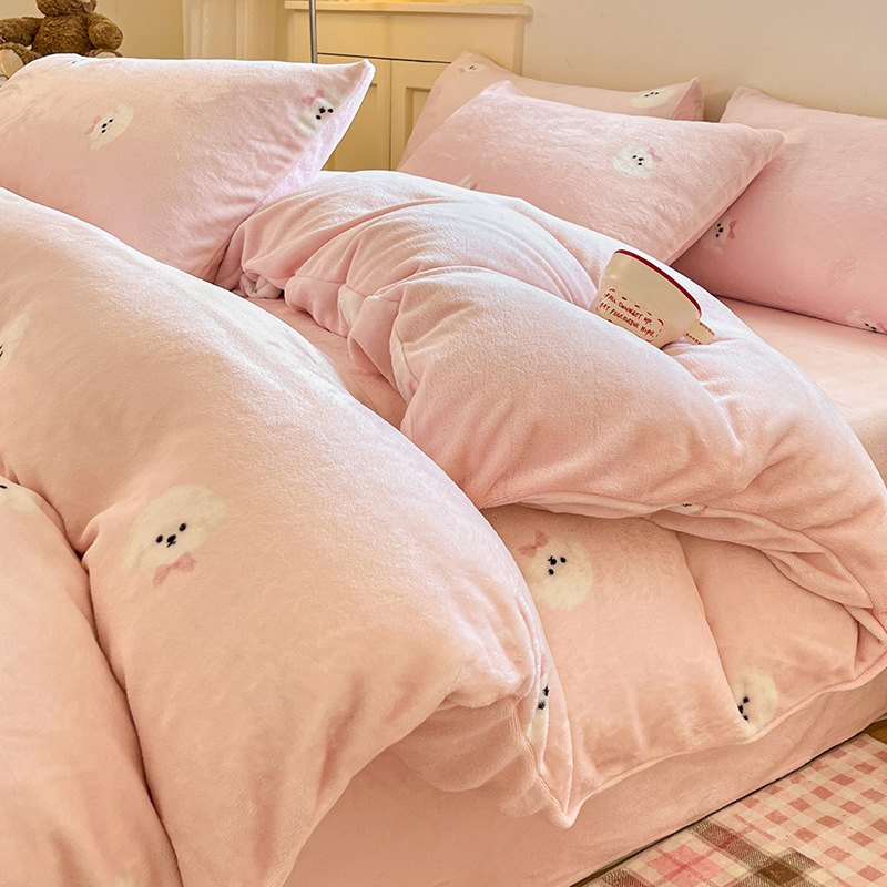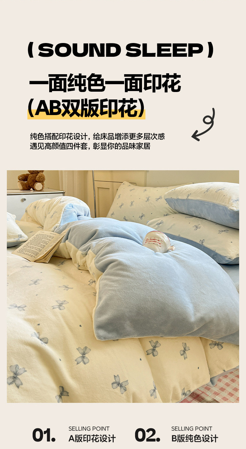 【YW】无忧购a类牛奶绒四件套冬季加厚珊瑚绒被套床上用品(截单后3-5天发货)
