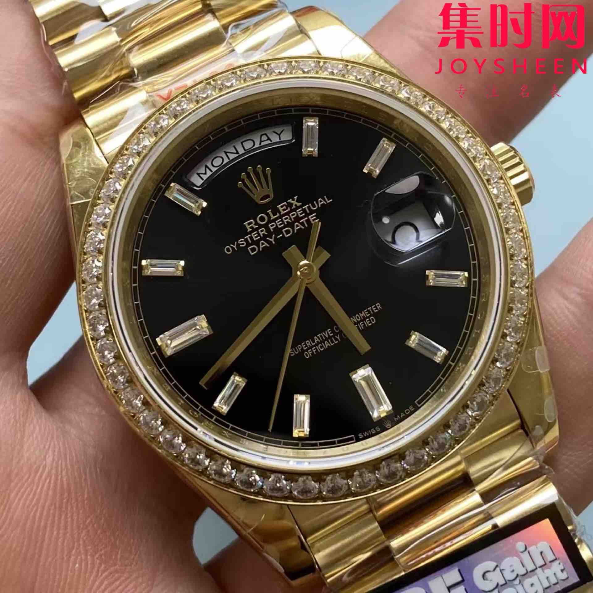 【钻圈款】QF配重版 重量180克+ 劳力士星期日历型系列 日志40mm 黑冰糖DD