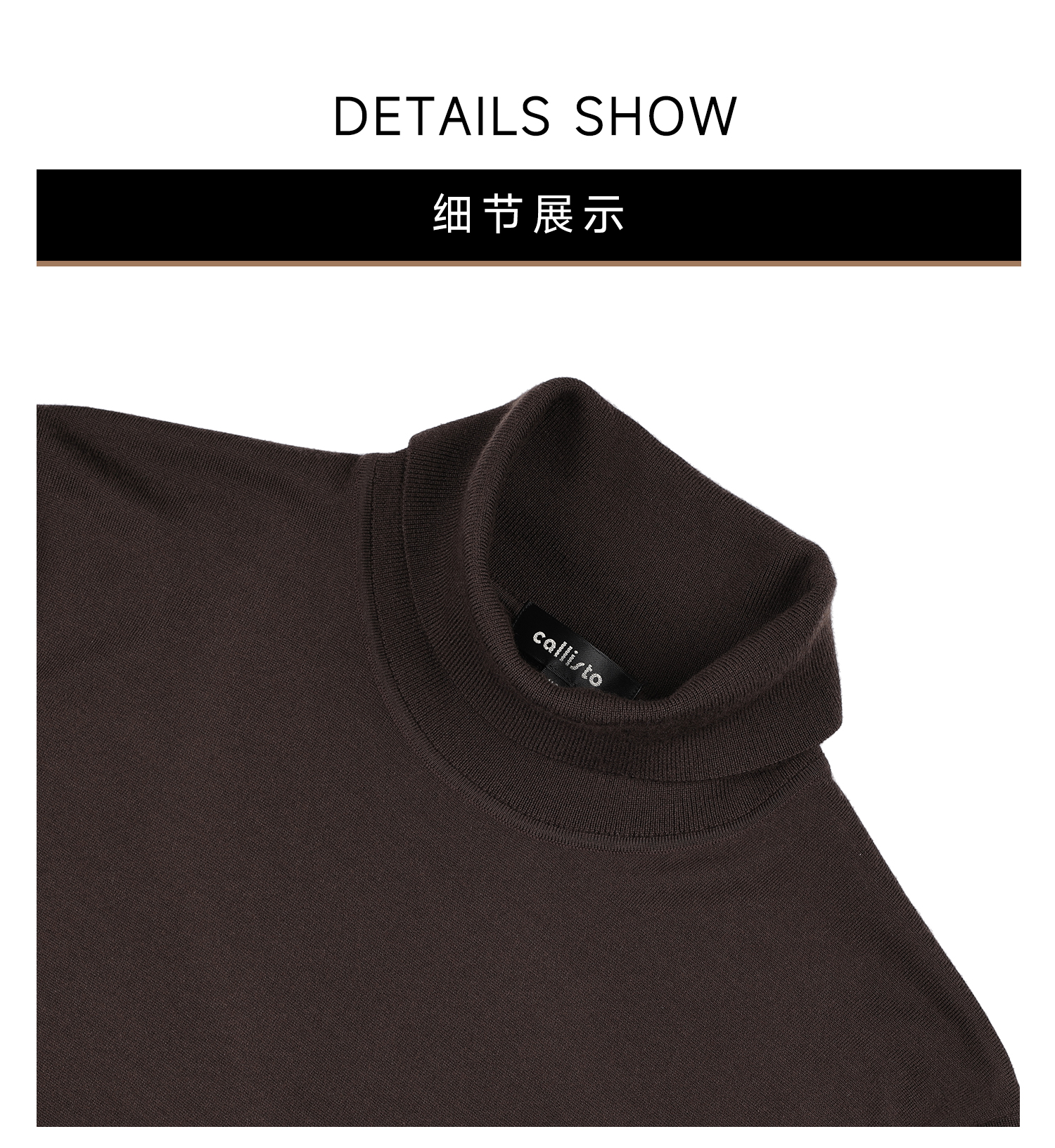 callisto雪茄棕巴素兰全羊毛翻领毛衣