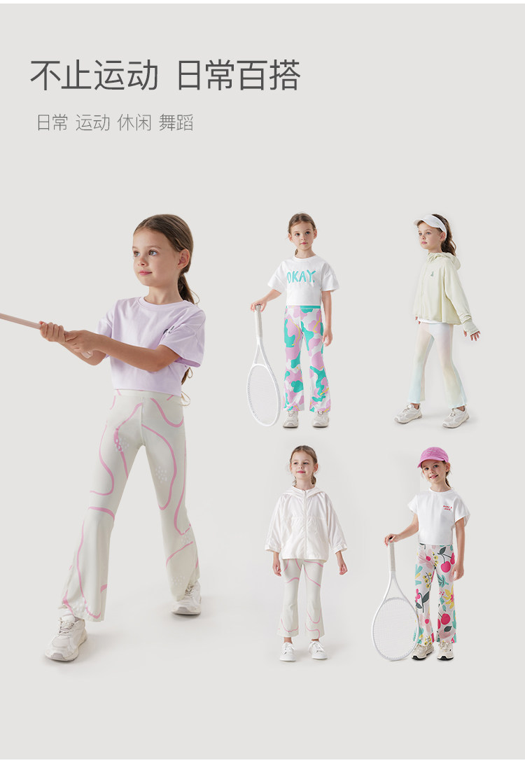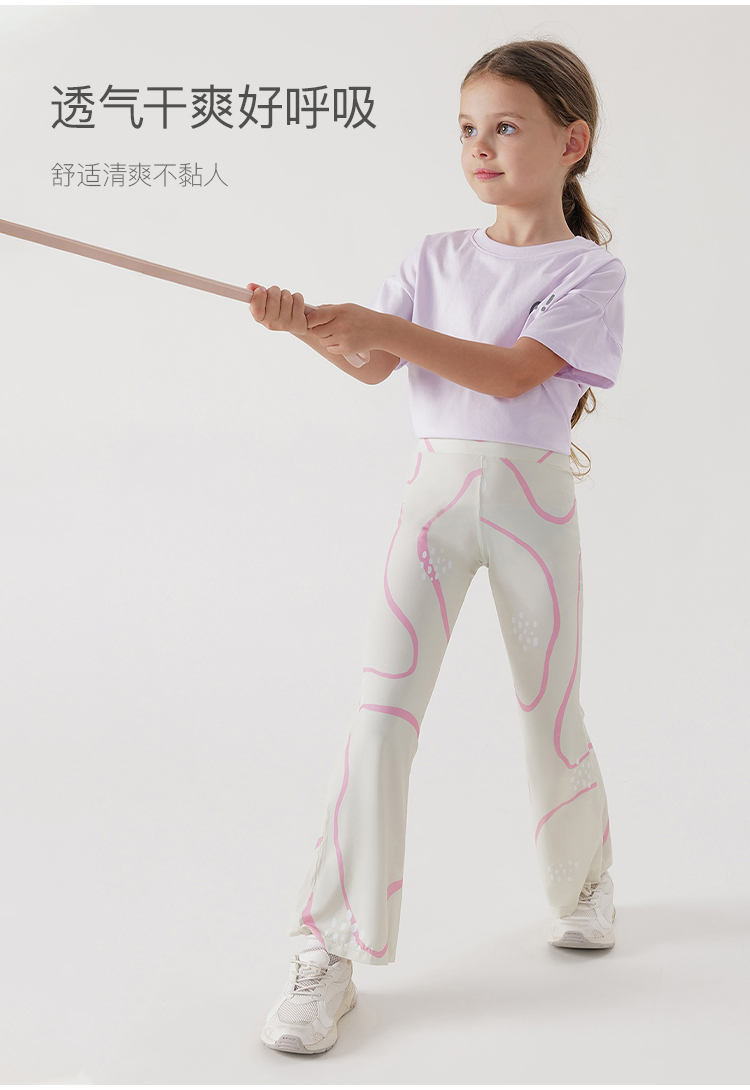 马克珍妮女童弹力运动瑜伽喇叭裤儿童裤子2024年春夏新款240293