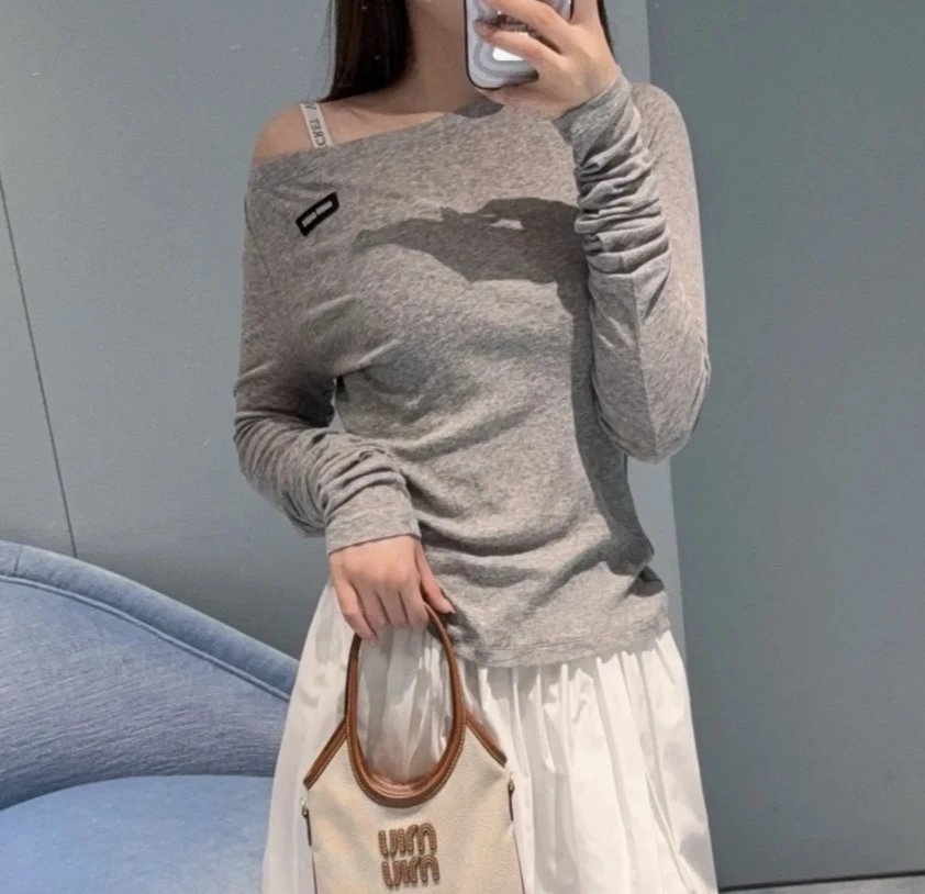 重磅推荐 缪一字船领长袖T恤 爆款面膜T恤 剪裁无敌 显瘦触感软糯