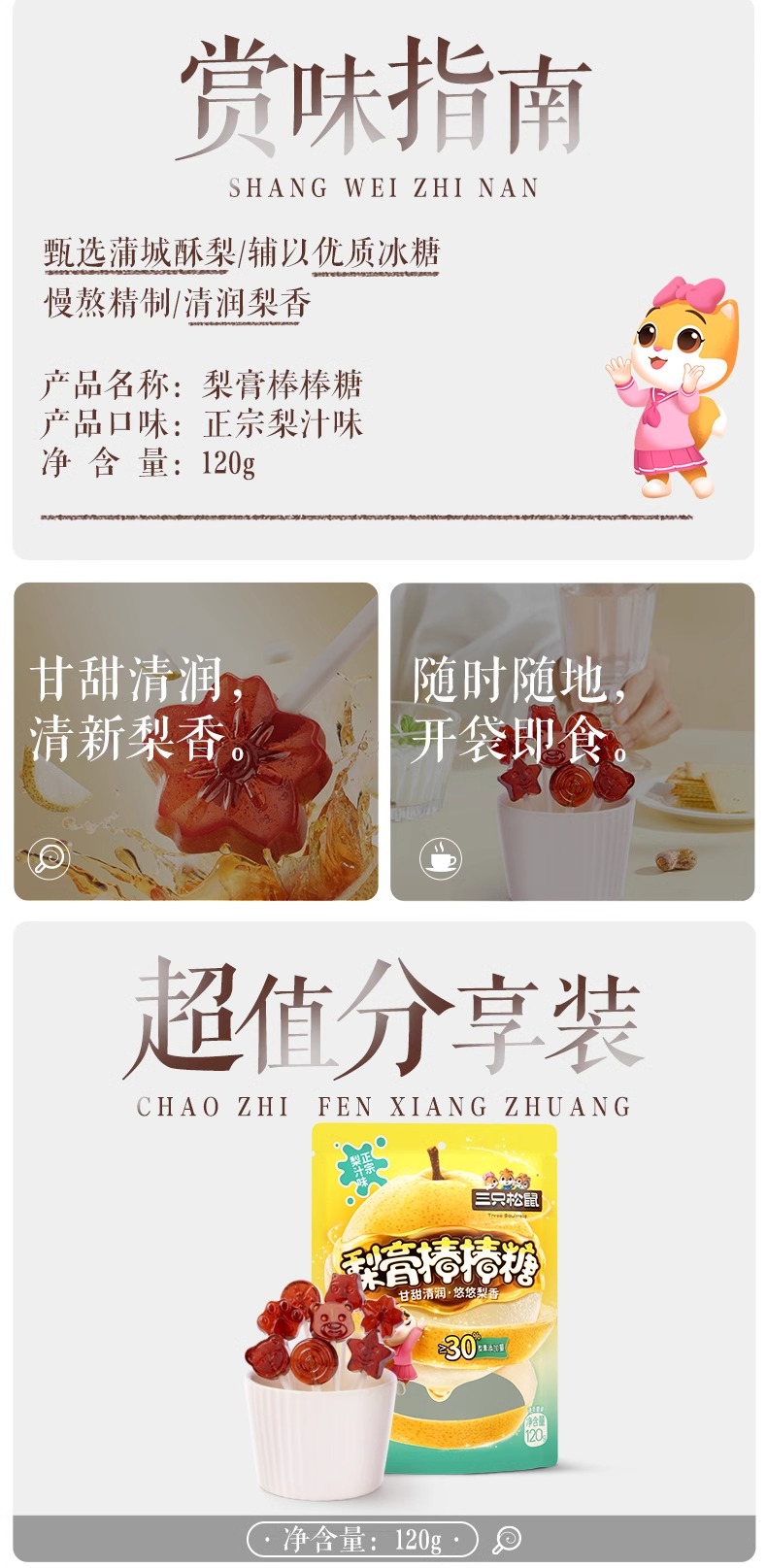 【清润甘甜❗️梨膏棒棒糖120g约20根】优选蒲城酥梨熬制,口口清甜,自然梨香!健康零食糖果不上火