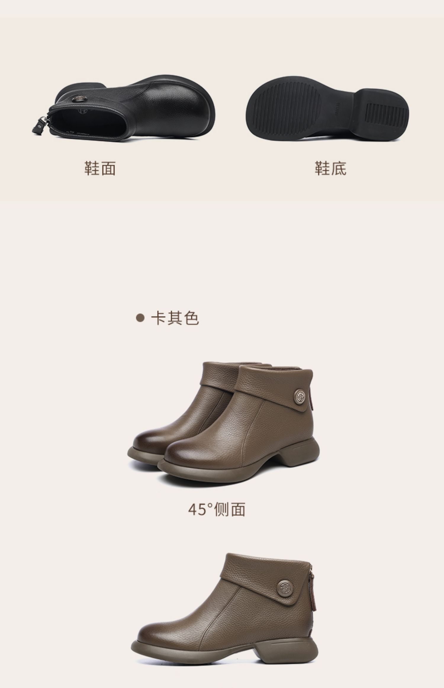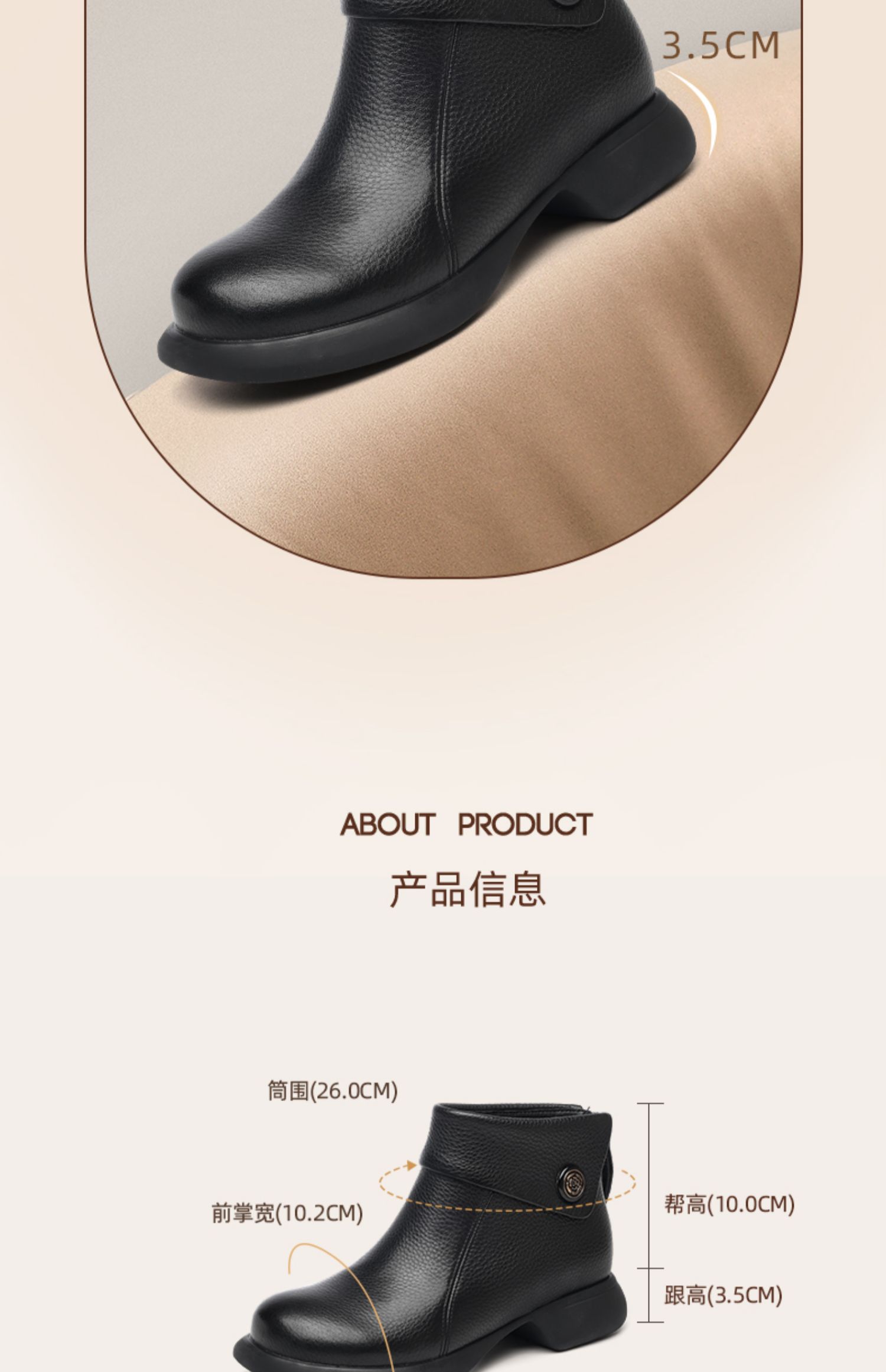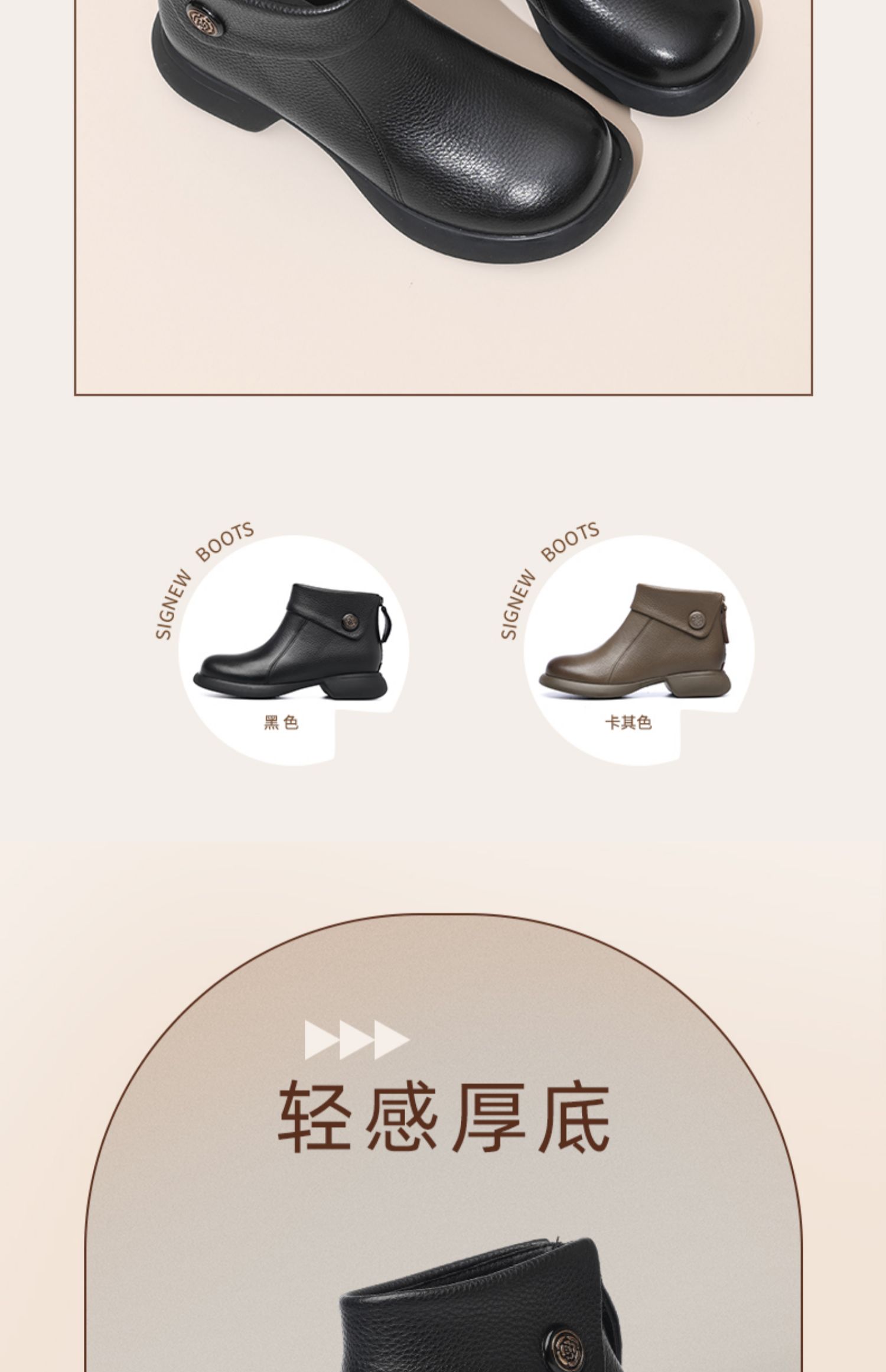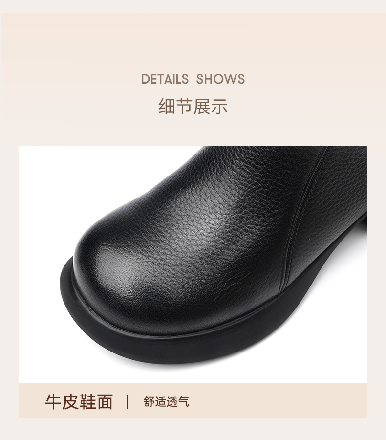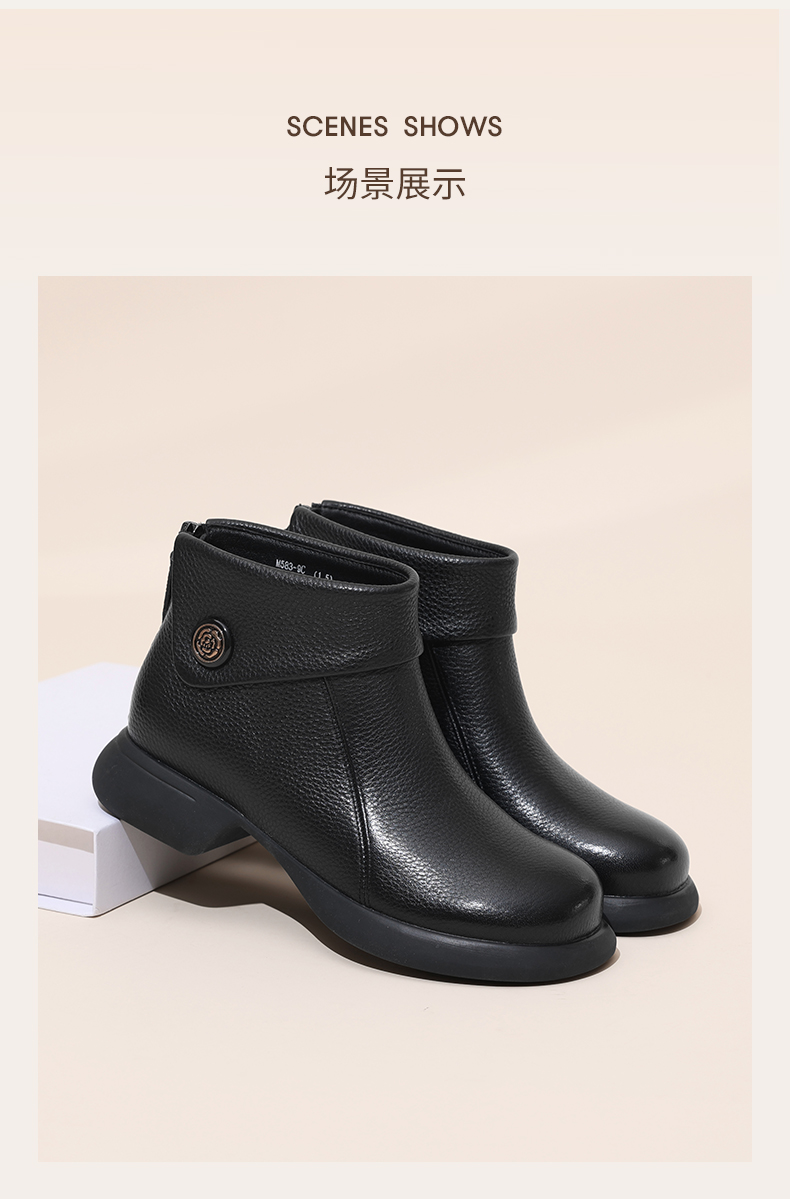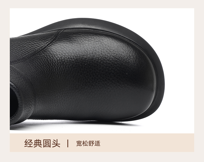 信诺真皮时装靴子不加绒单靴2024秋冬新款女鞋中年妈妈鞋厚底短靴M583-9C